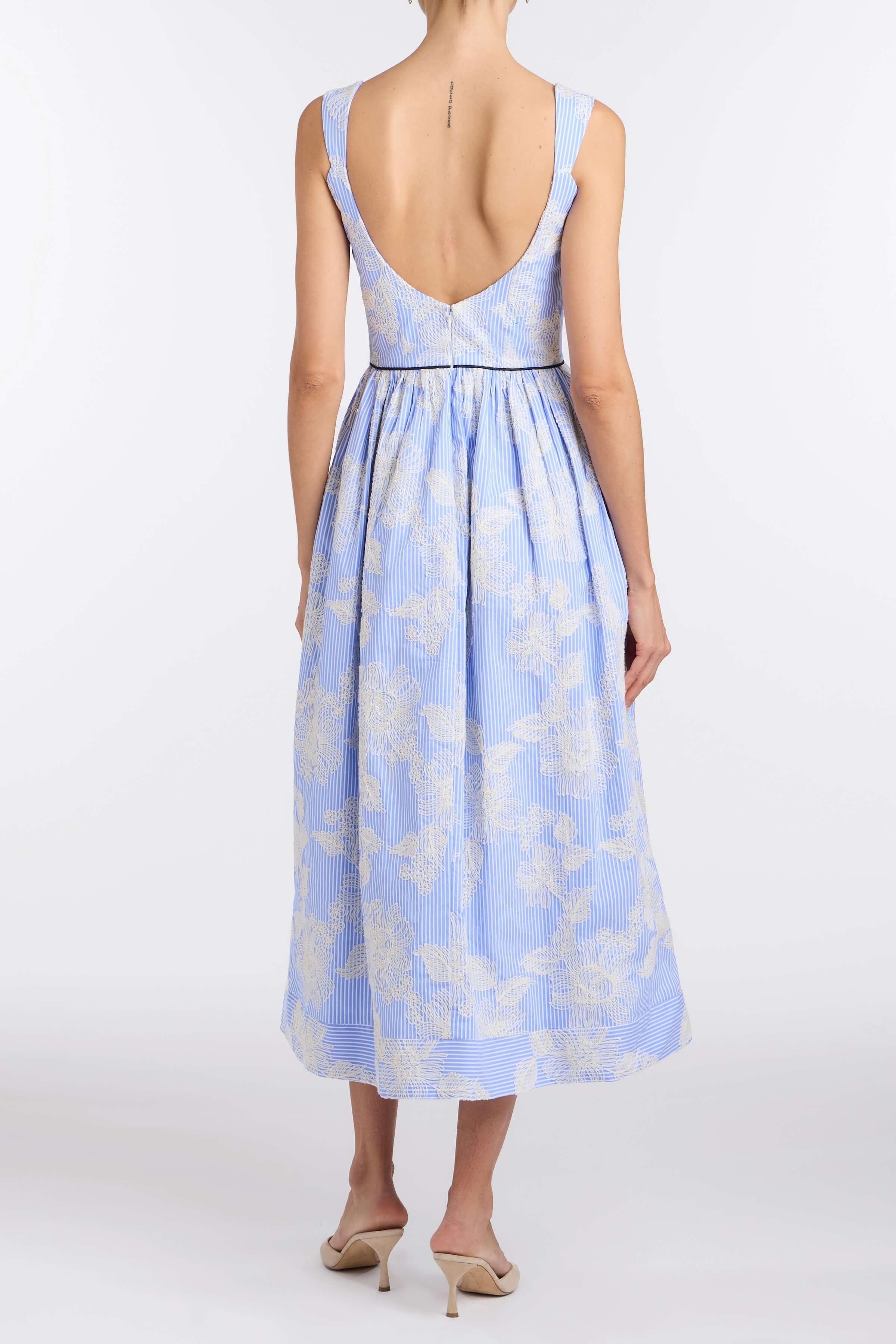 Rousseau Powder Blue Floral Cloque Midi Dress