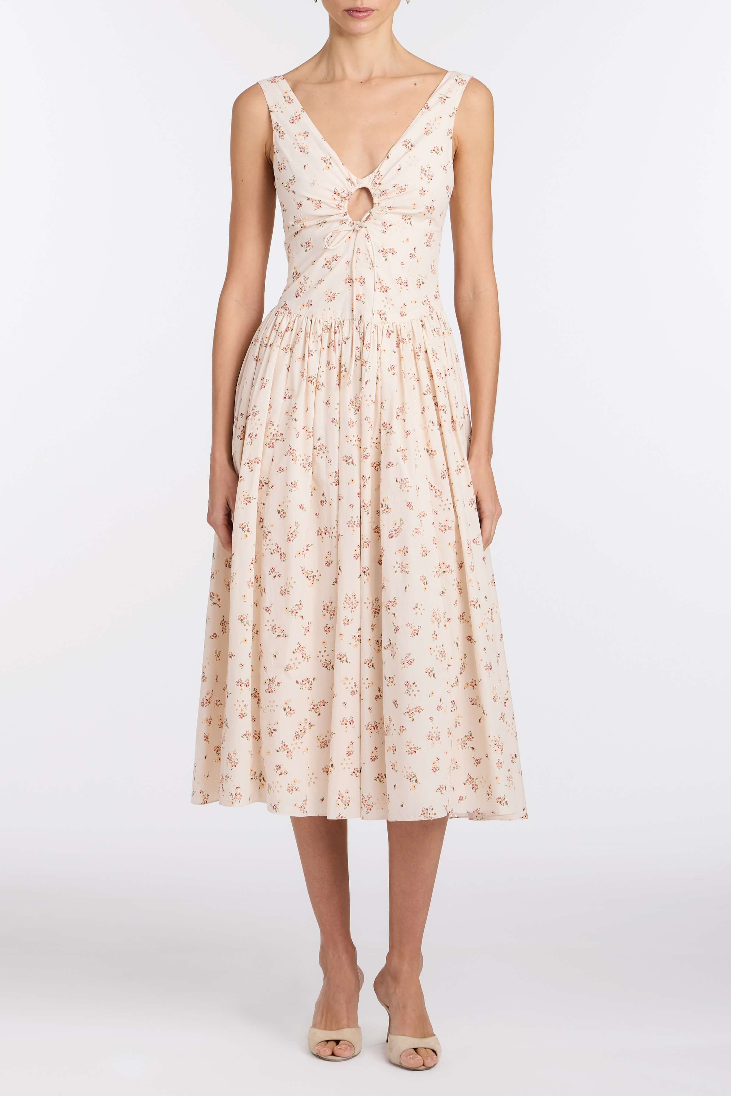 PRE-ORDERPenelope Blush Bouquet Cotton Eyelet Keyhole Midi Dress