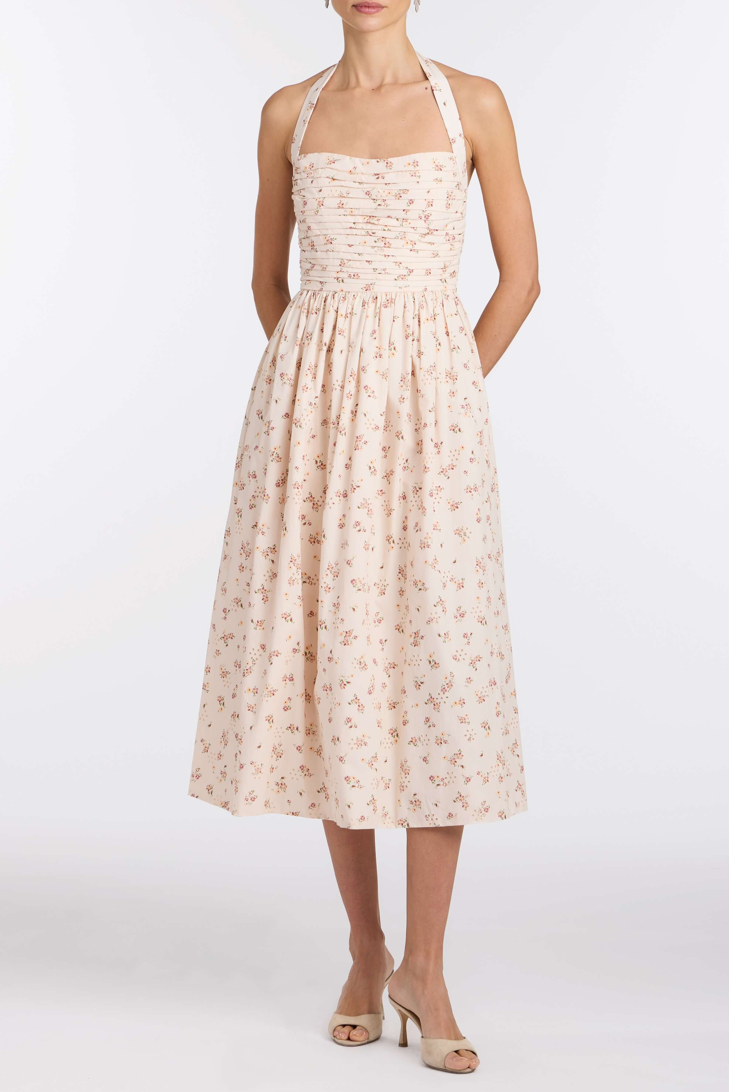 PRE-ORDERLeia Blush Bouquet Halter Neck Midi Dress