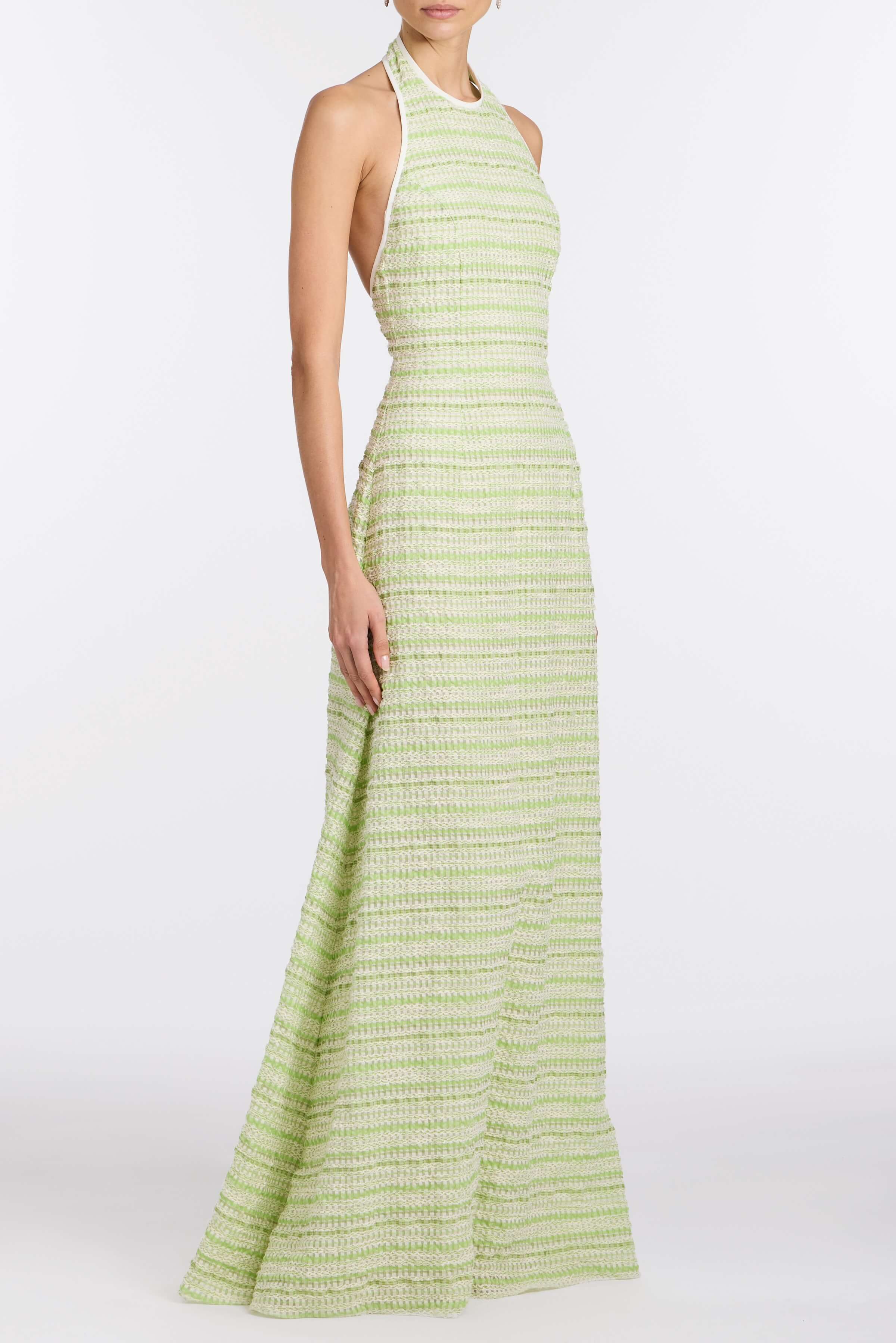 PRE-ORDERSahara Lime Textured Stripe Halter Gown