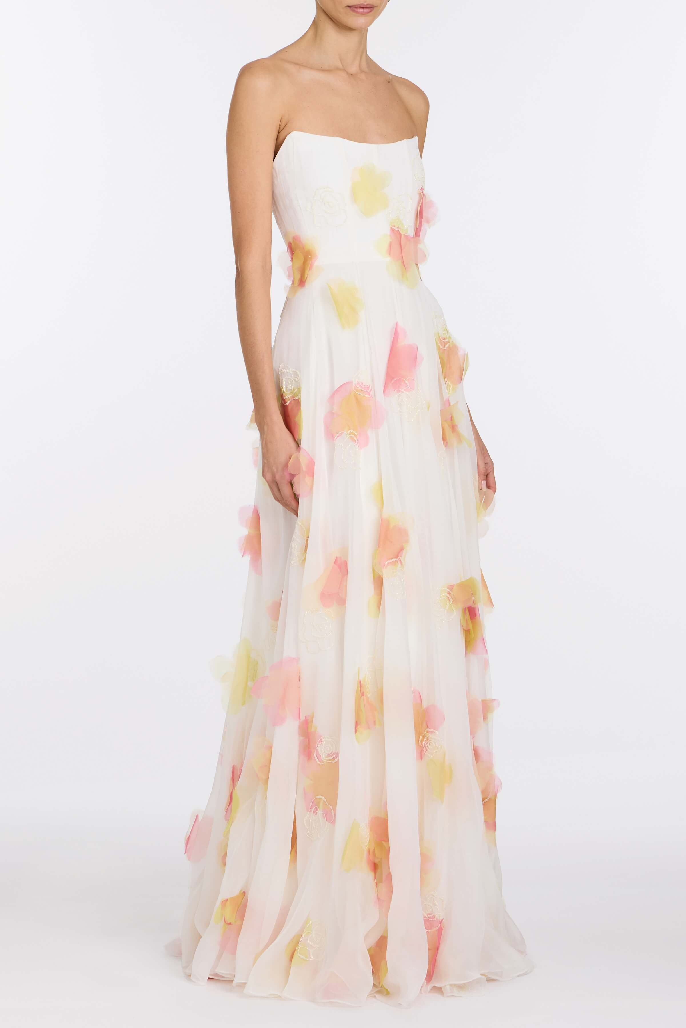 PRE-ORDERLaila Floral Beaded Organza Strapless Gown