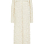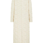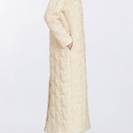- Quilted ivory swirl long coat with raglan sleeve and pockets, fully lined
