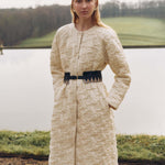 The Briallen Ivory Quilted Coat is styled with the Honora Thick Belt in the AW25 lookbook.