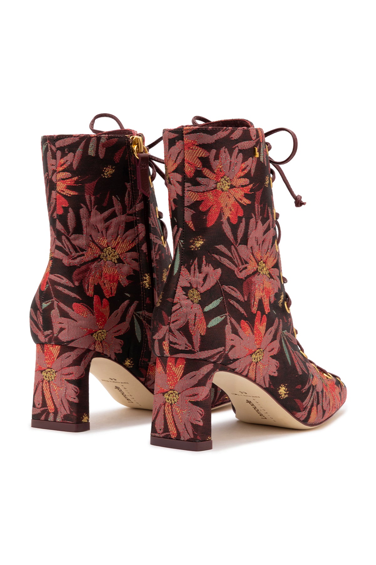 Larroudé x Markarian Alexis Boot In Floral Embroidery Burgundy Fabric