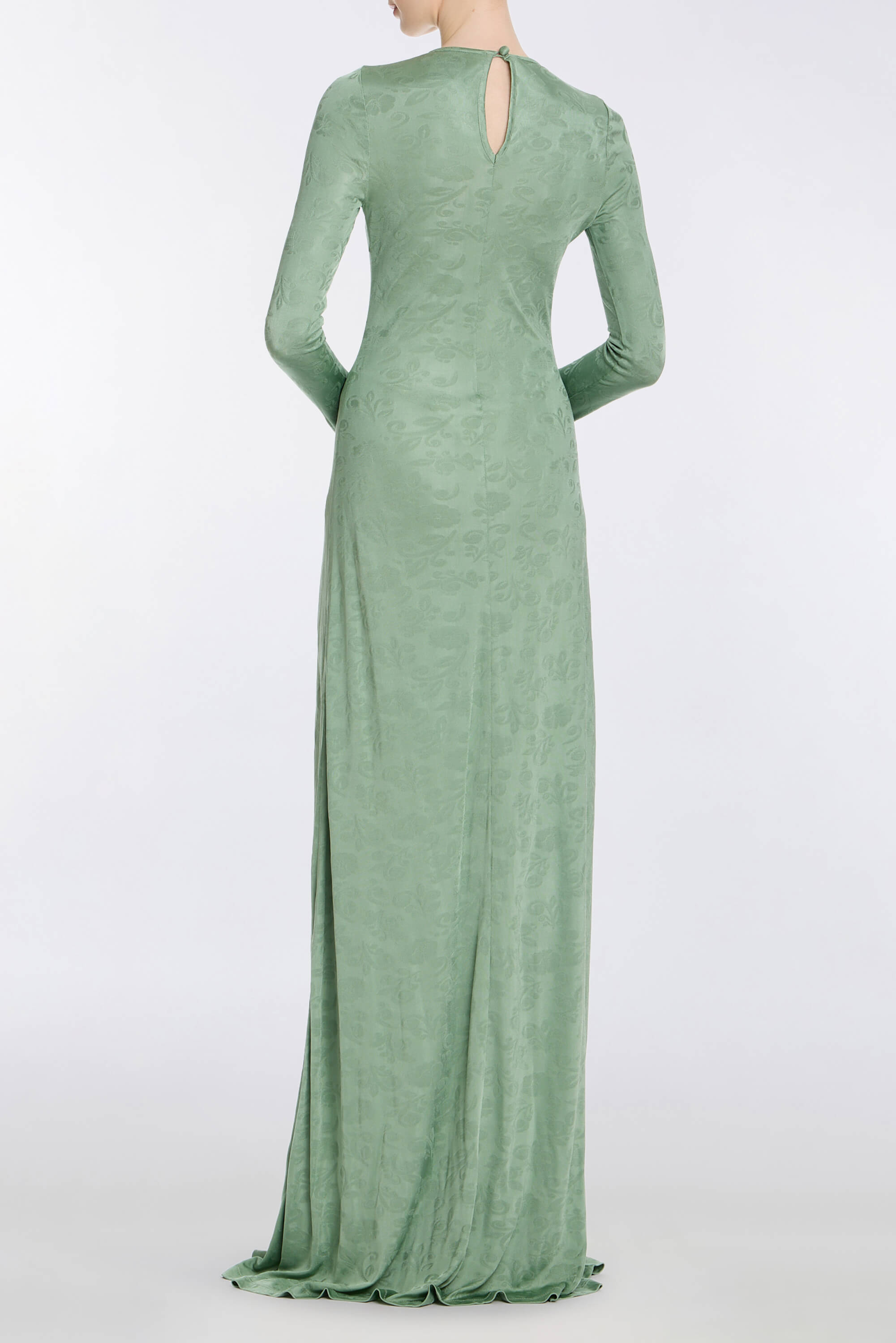 Coco Pistachio Green Floral Jersey Long Sleeve Gown