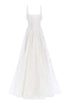 • Off-white embroidered daisy square neck a-line gown with back ruffle detail, fully lined
