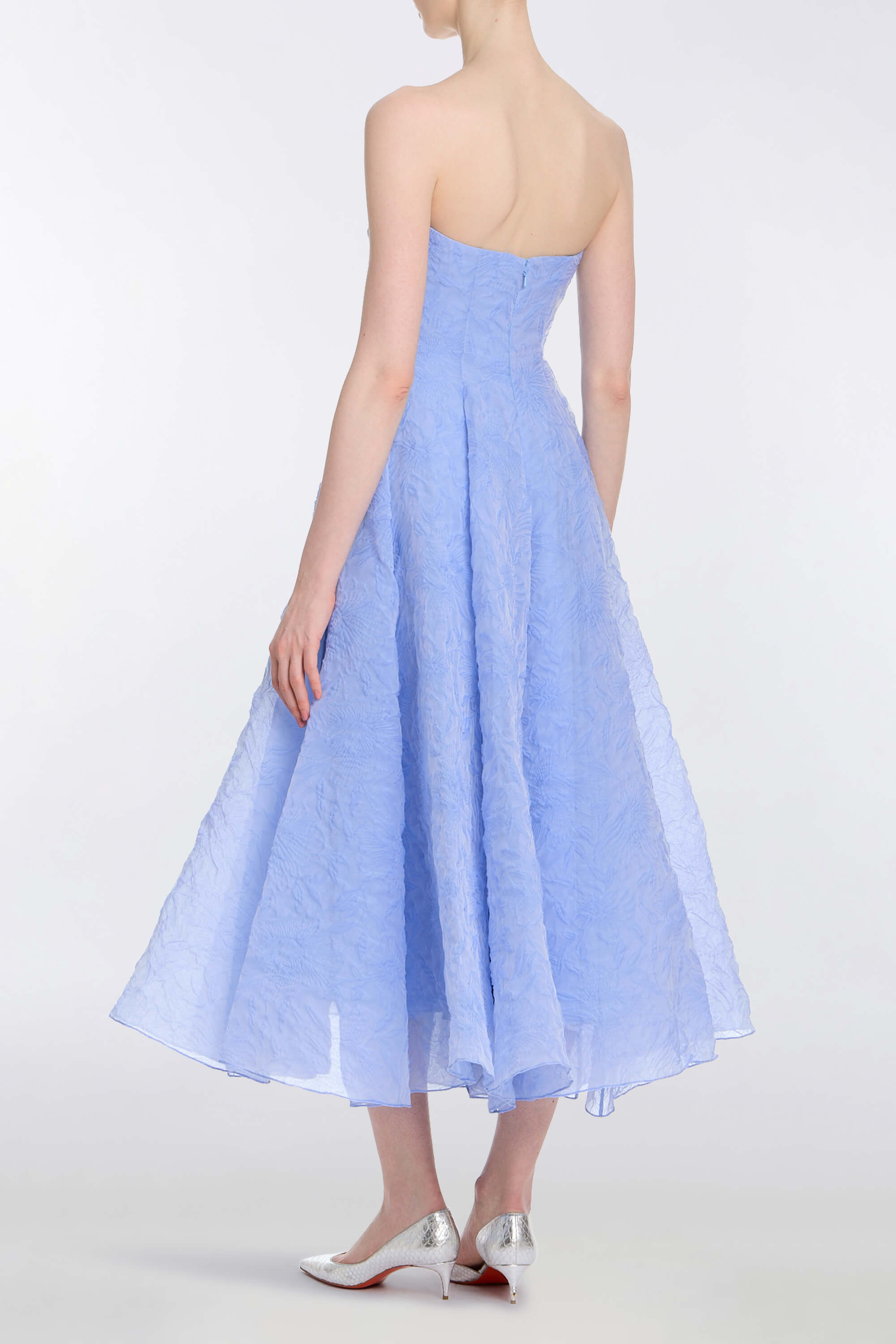 Rousseau Powder Blue Floral Cloque Midi Dress