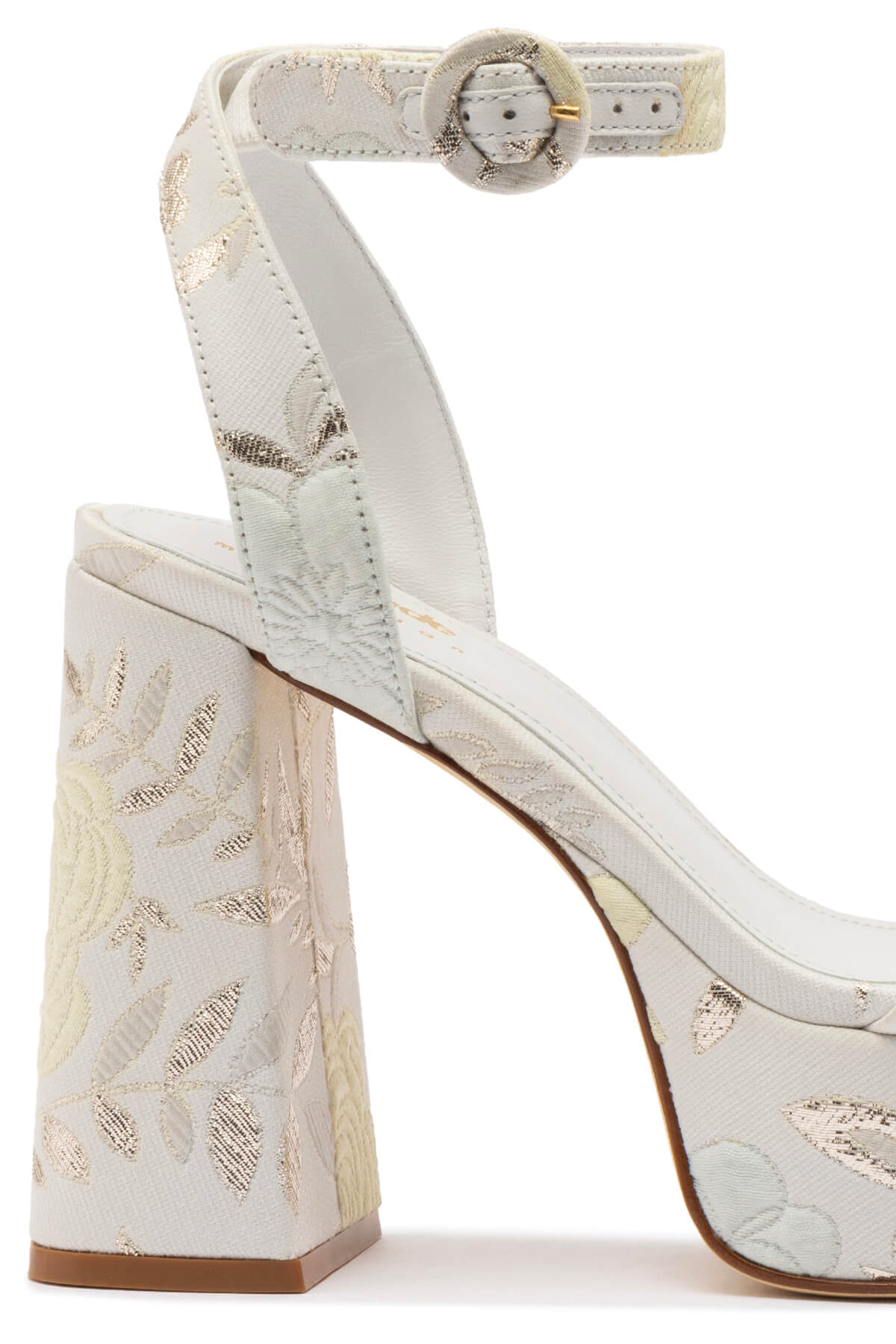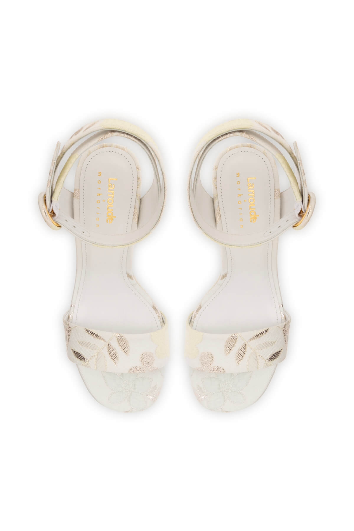Larroudé x Markarian Dolly Sandal In Ivory Metallic Brocade