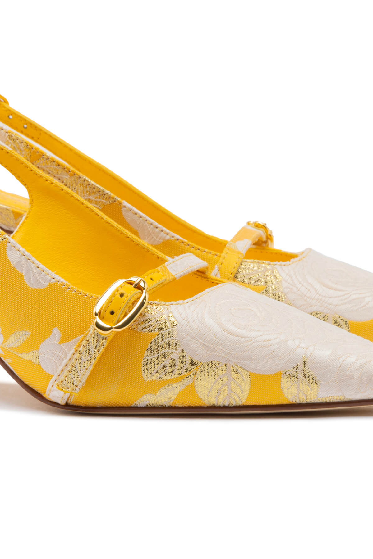 Larroudé x Markarian Ines Pump In Yellow Floral Brocade