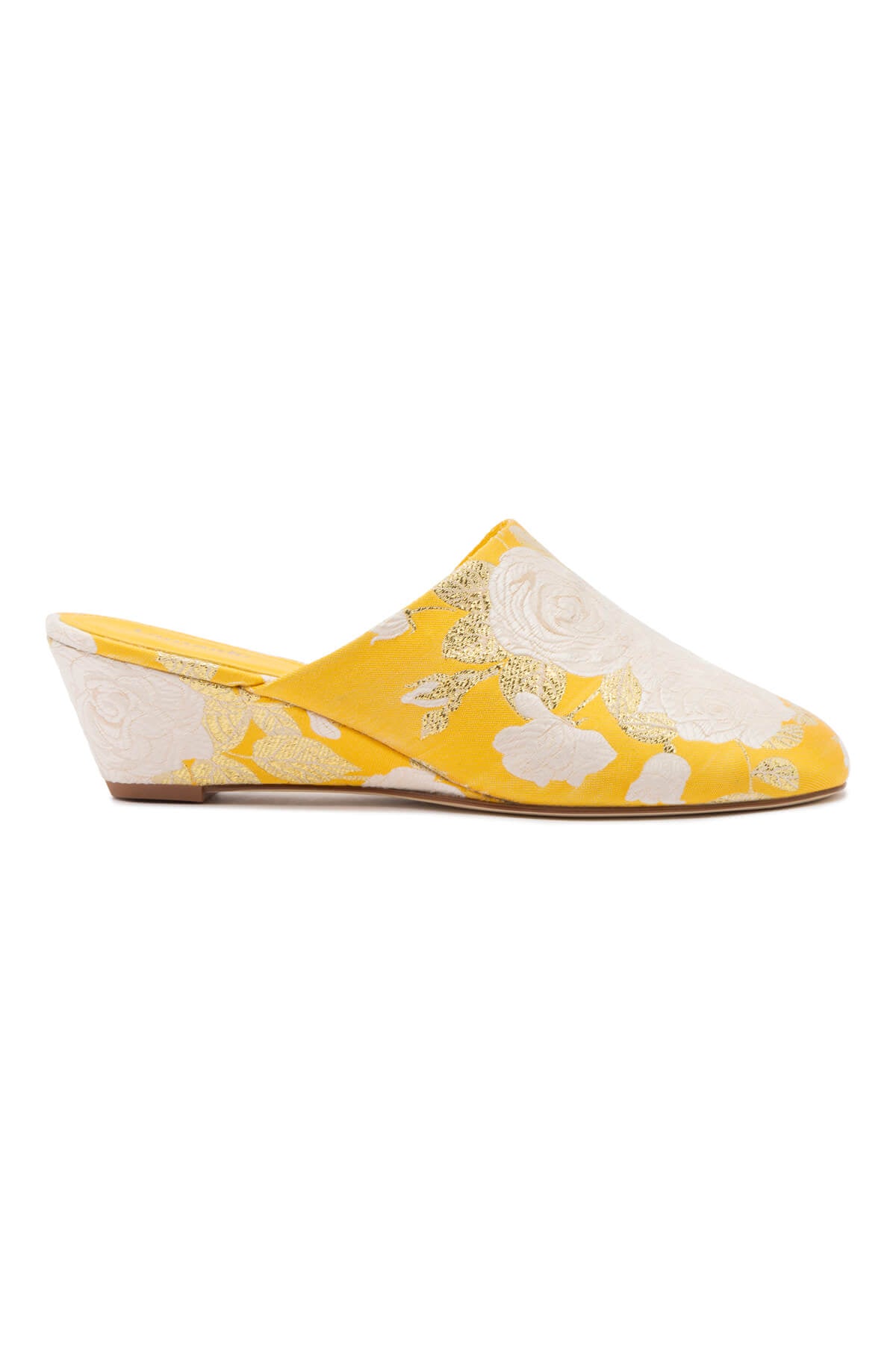 Larroudé x Markarian Venice Wedge In Yellow Floral Brocade