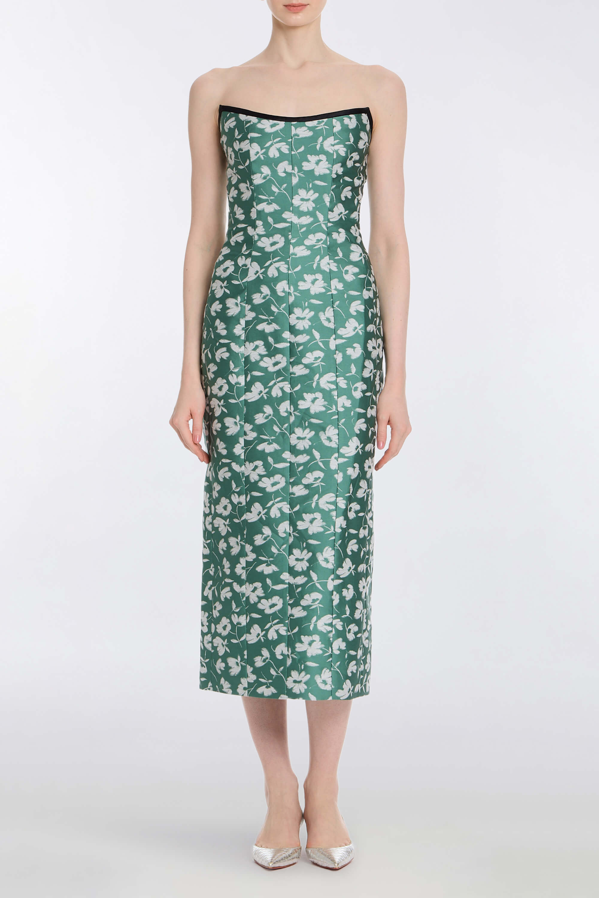 PRE-ORDERLana Green and White Floral Brocade Midi Dress