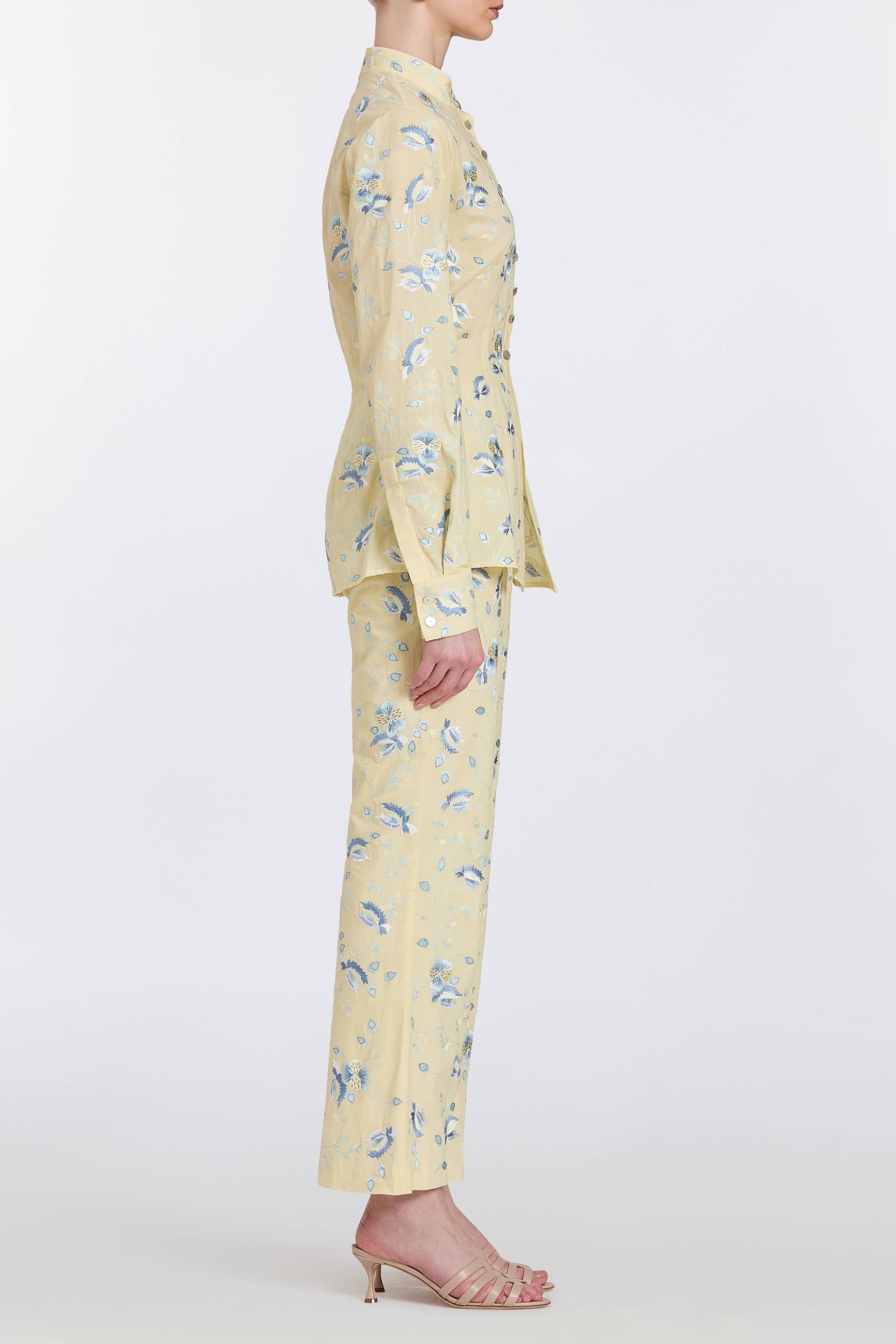Larroudé x Markarian Florence Broderie In Blue Floral Ikat