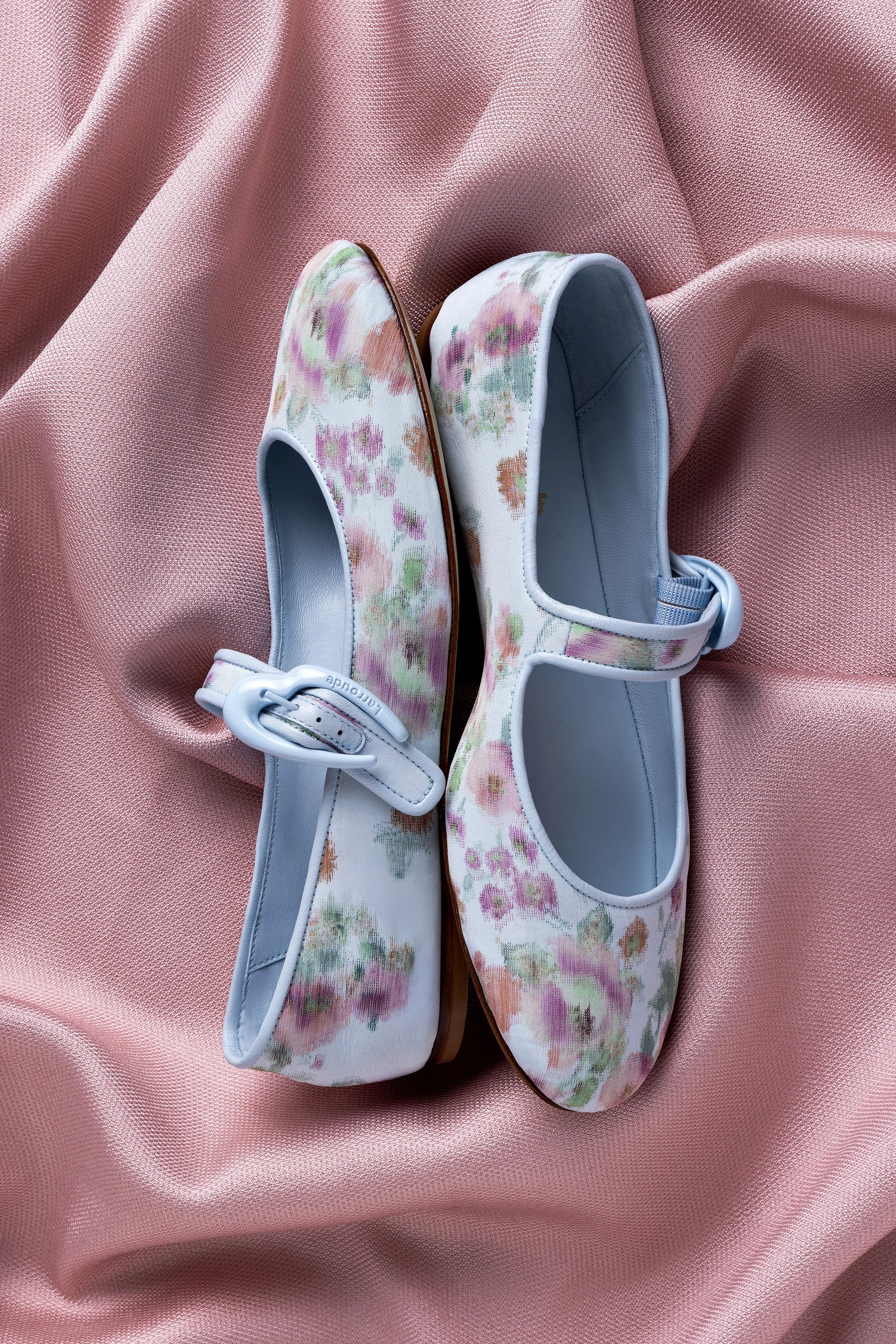 Larroudé x Markarian Verona Ballet Flat In Blue Floral Ikat