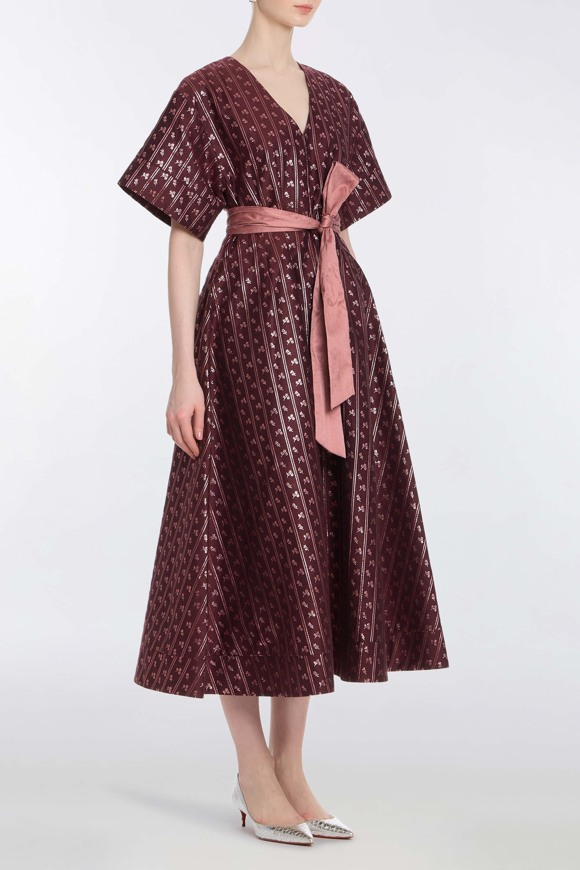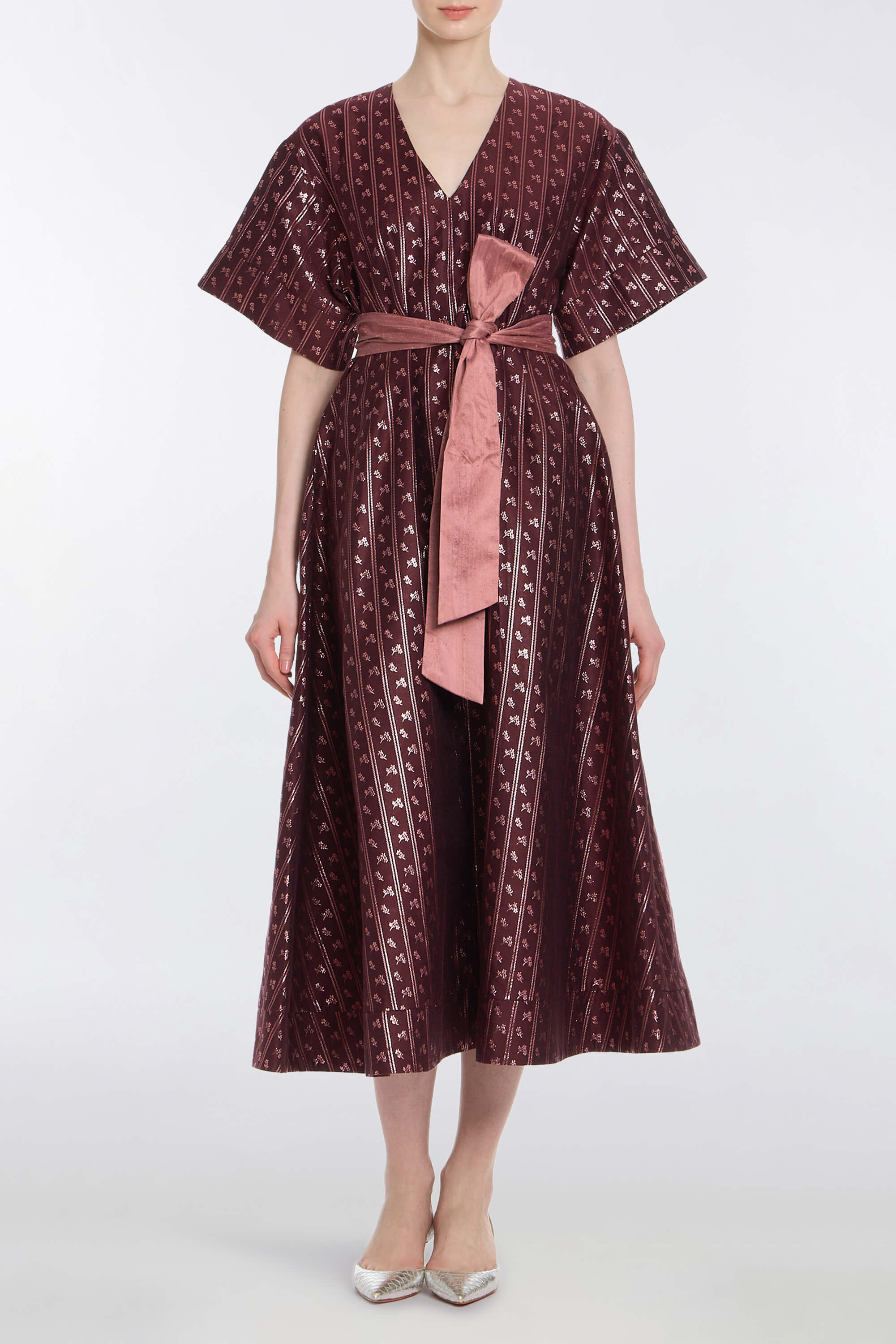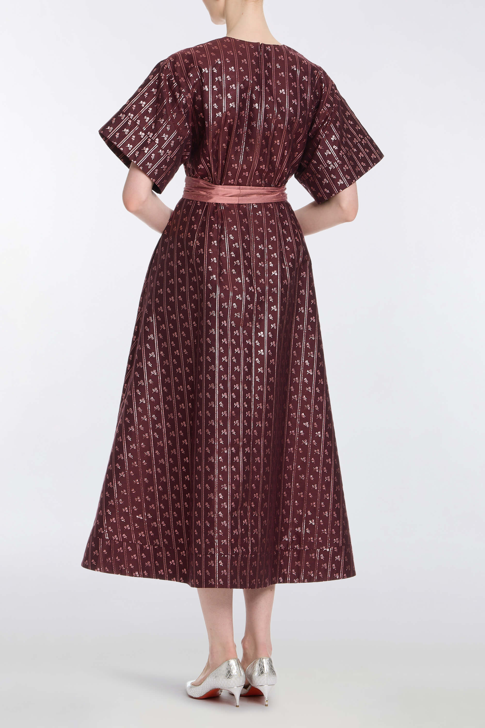 PRE-ORDERLutetia Burgundy Floral Stripe Midi Dress