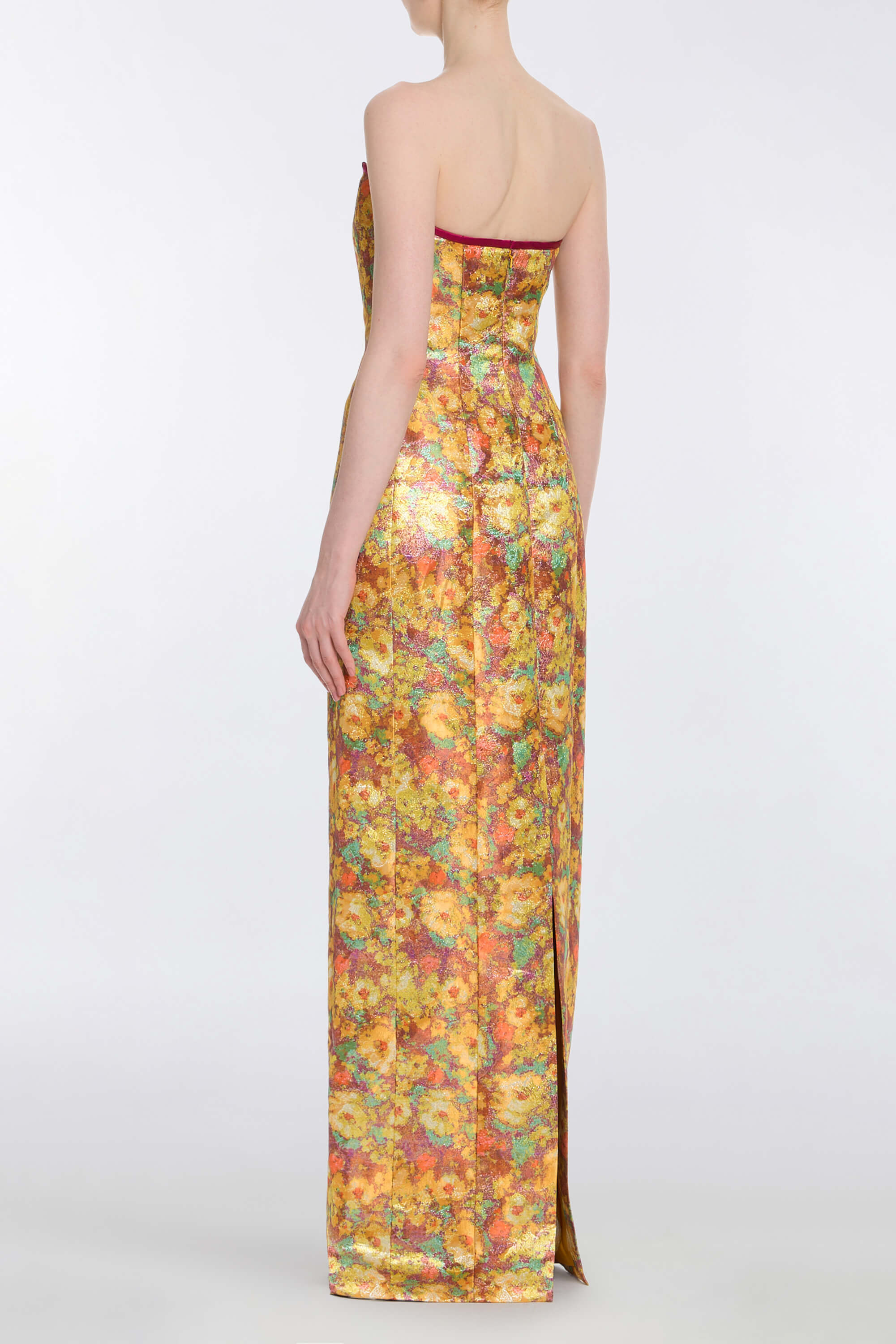 PRE-ORDEROdessa Golden Metallic Floral Column Gown