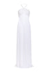 - White silk crepe gown with pearl embellished bodice and halter neck, fully lined