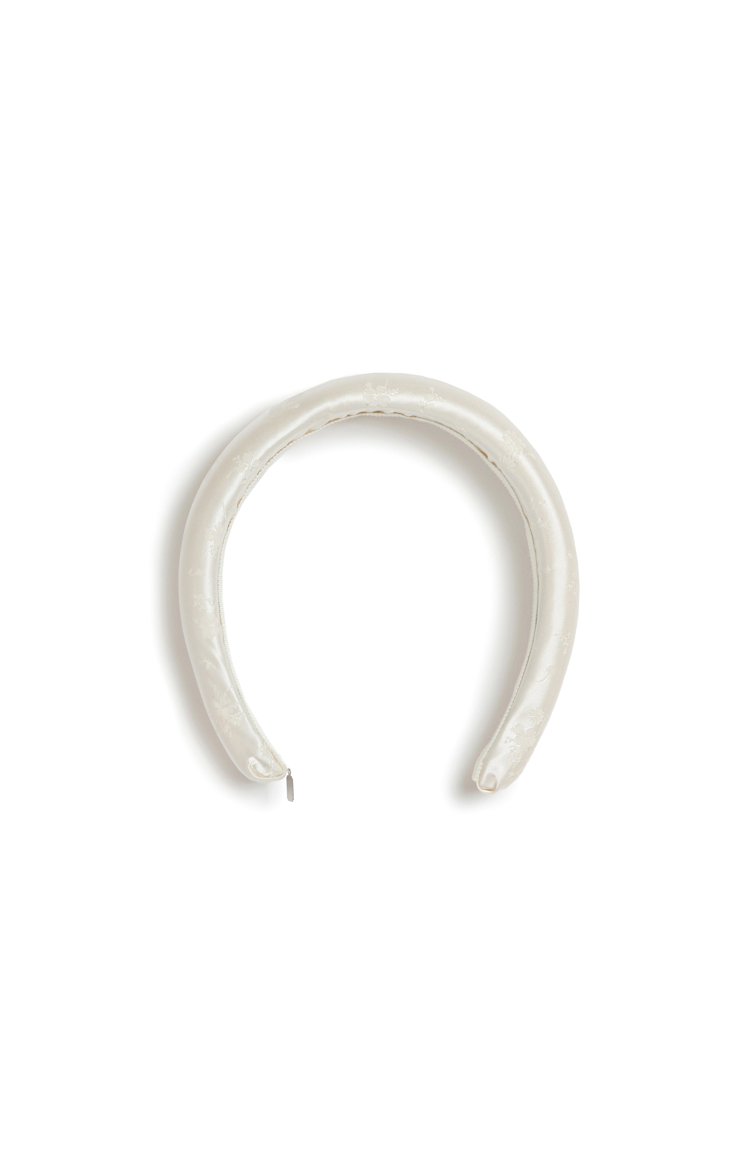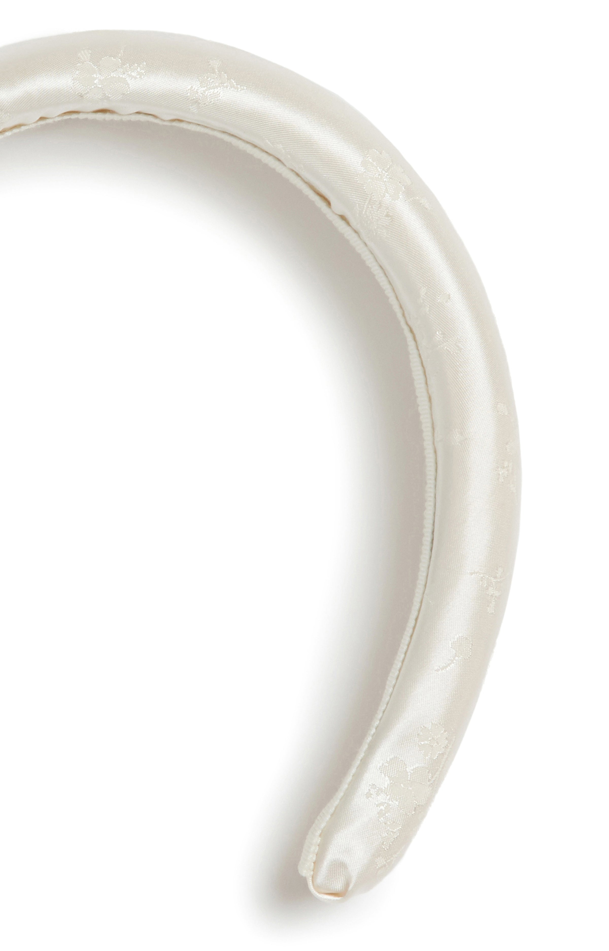 - Bruna Sculptural Padded Headband in White Satin Floral