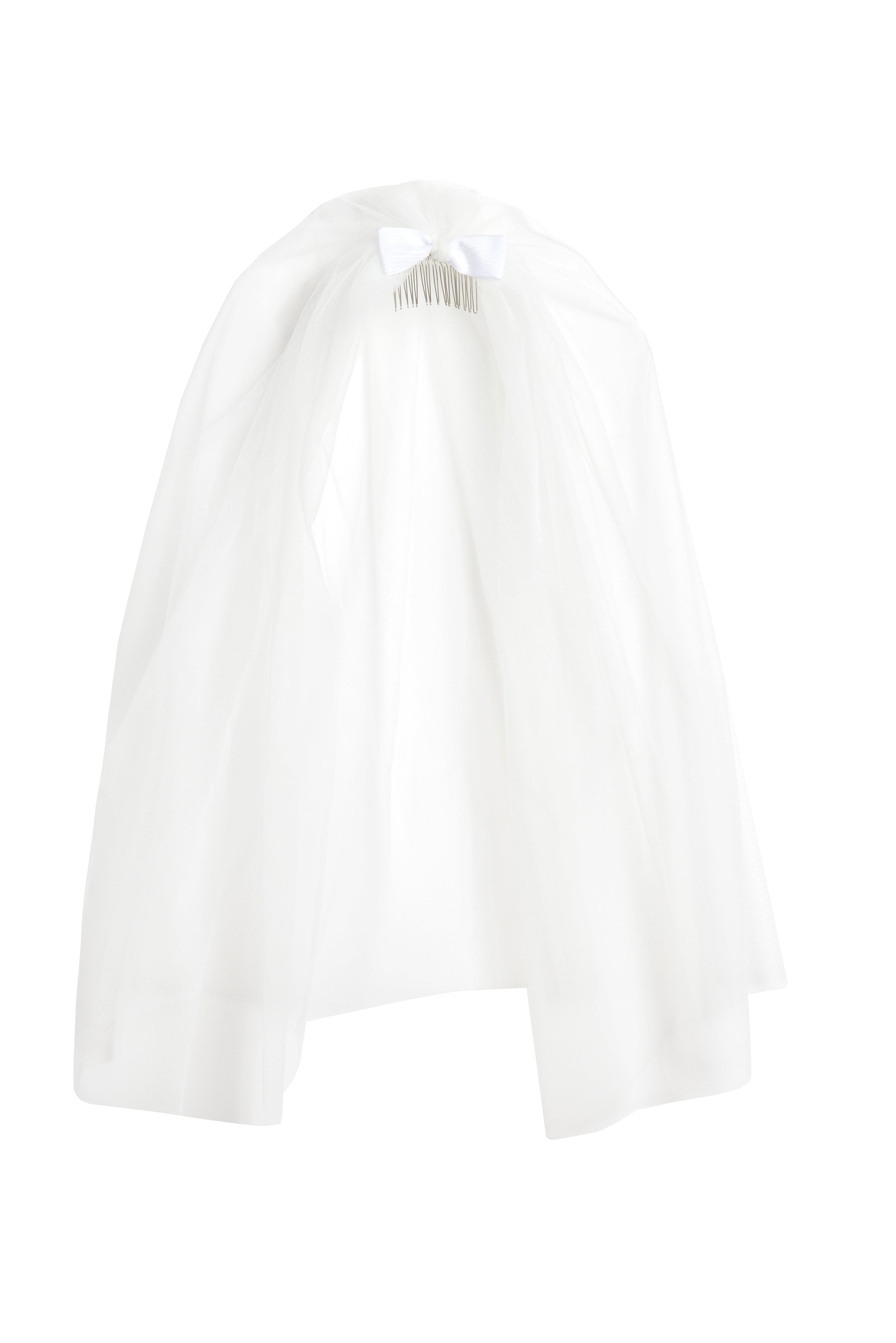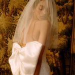 - Calla Shoulder Length Blusher Veiling in White Illusion Tulle with Moire Ribbon Bow Detail