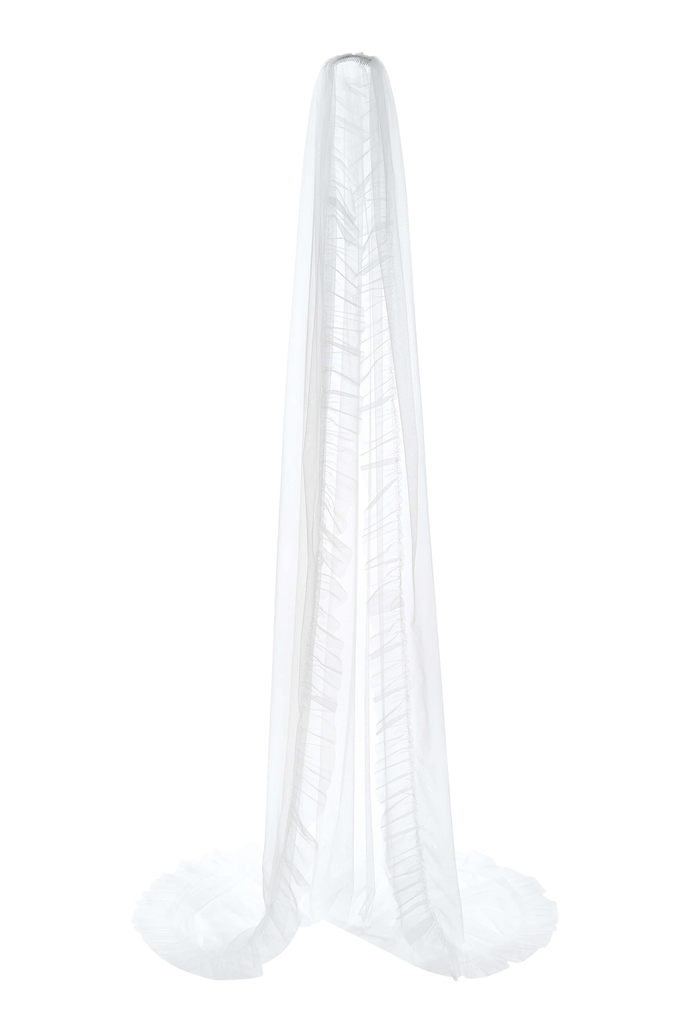 - White cathedral veil with ruffled edge