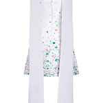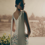 - Multicolor floral beaded white silk cotton mini dress with bow shoulder trains, fully lined