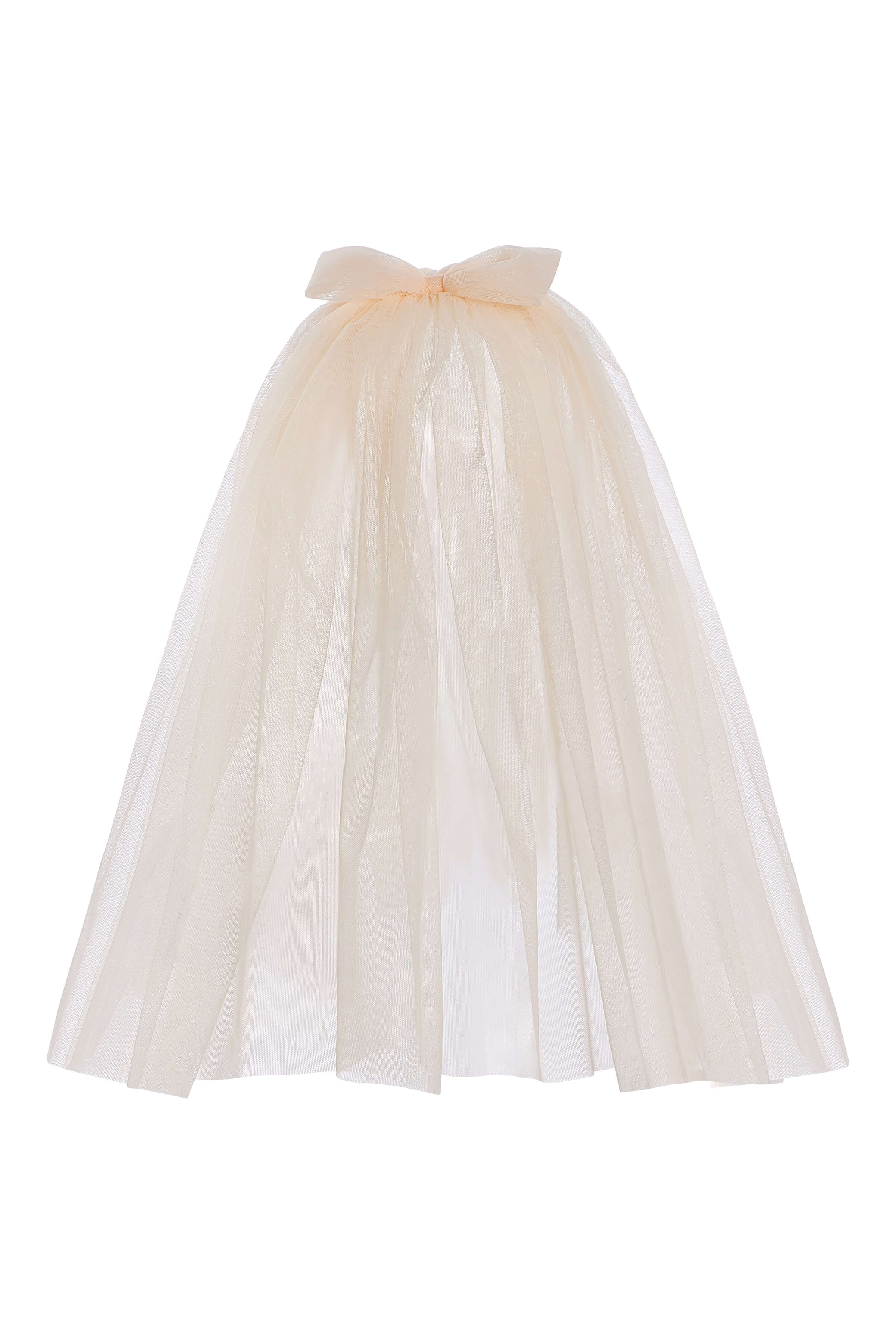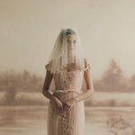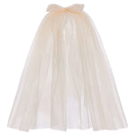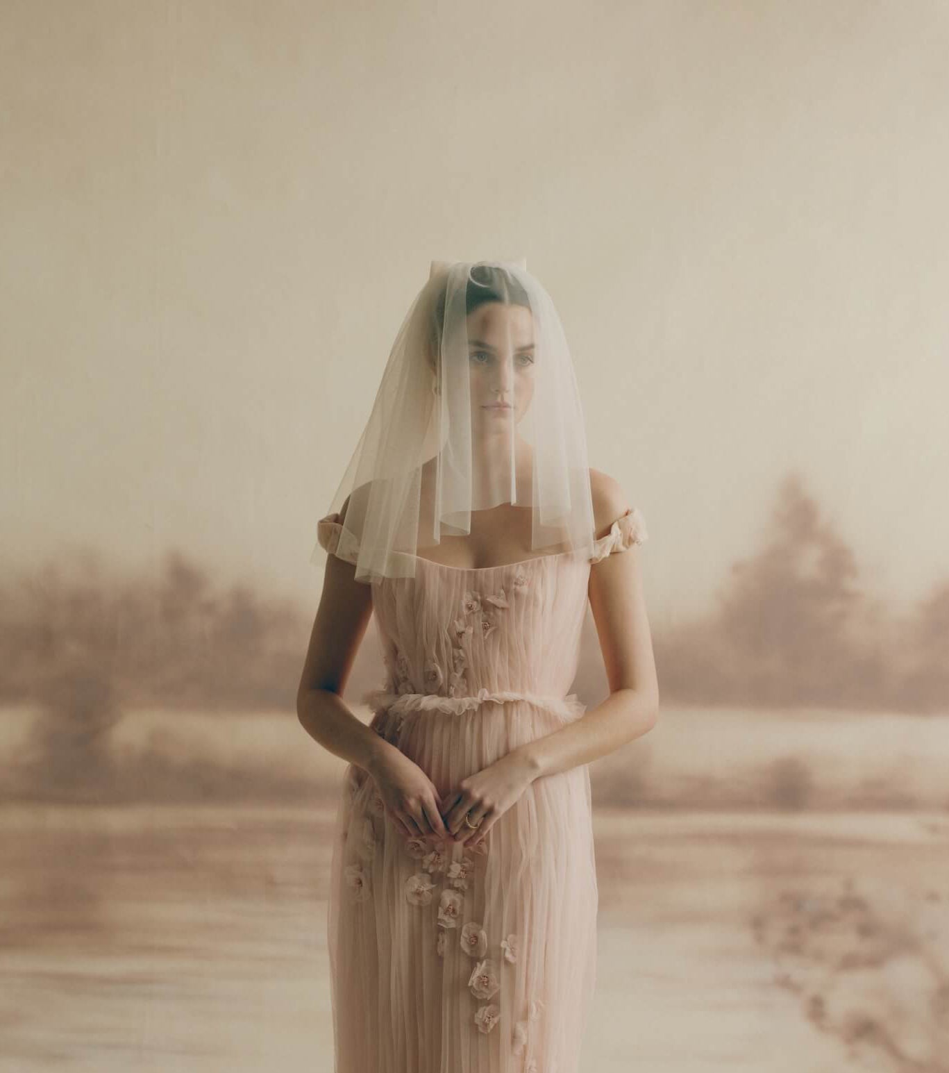 - Blush pink elbow length tulle veil with bow made in partnership with Gigi Burris Millinery
