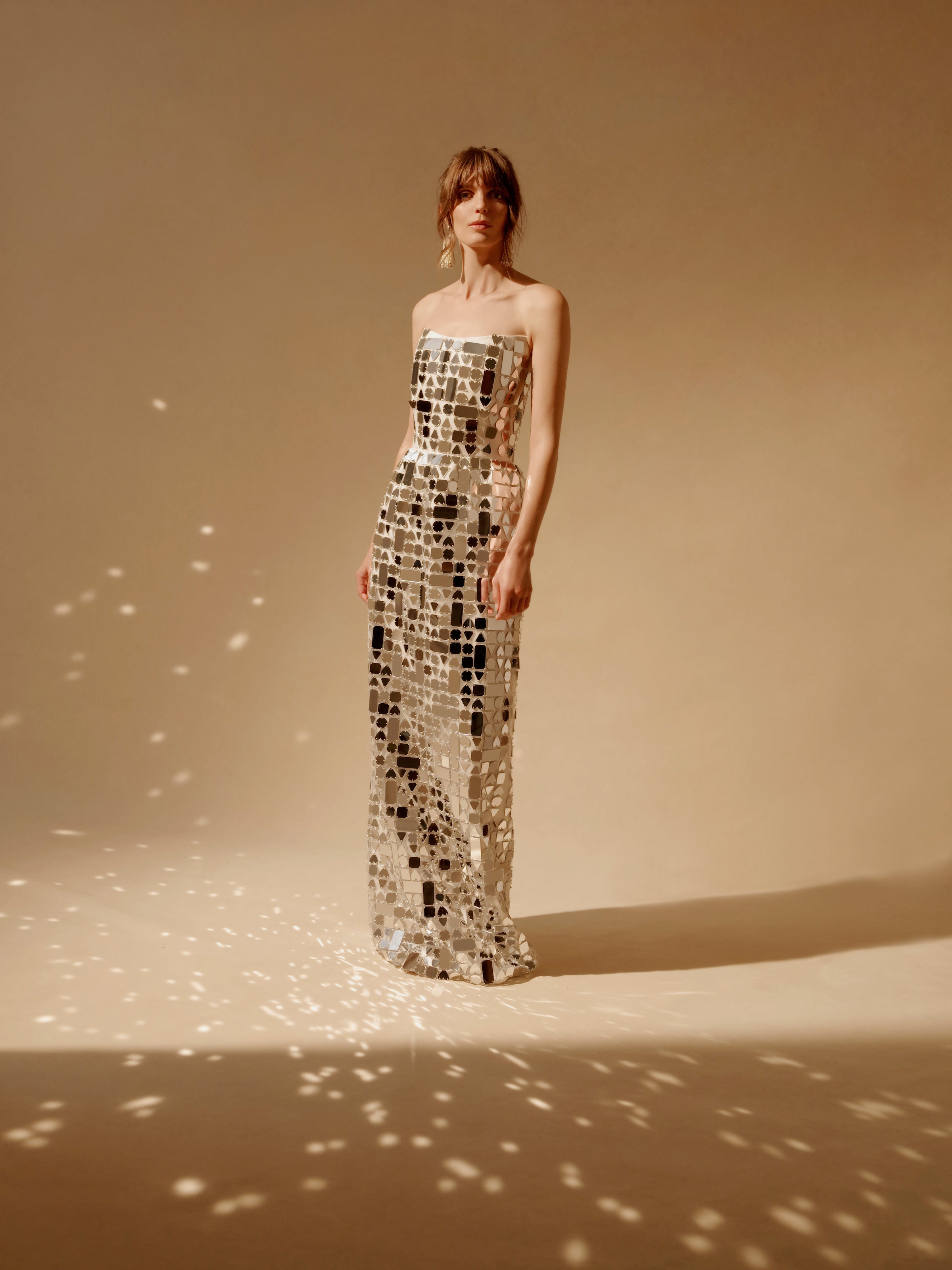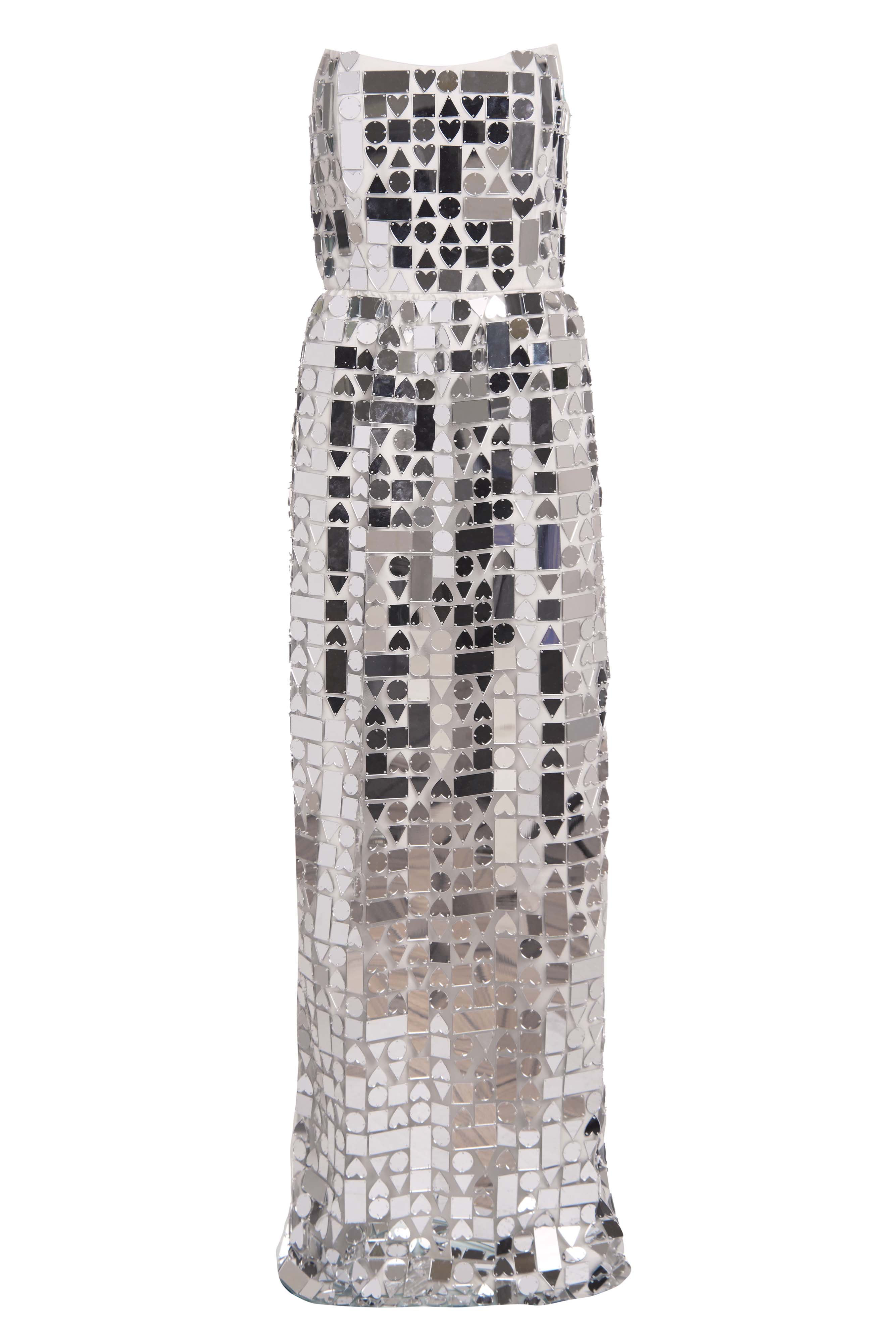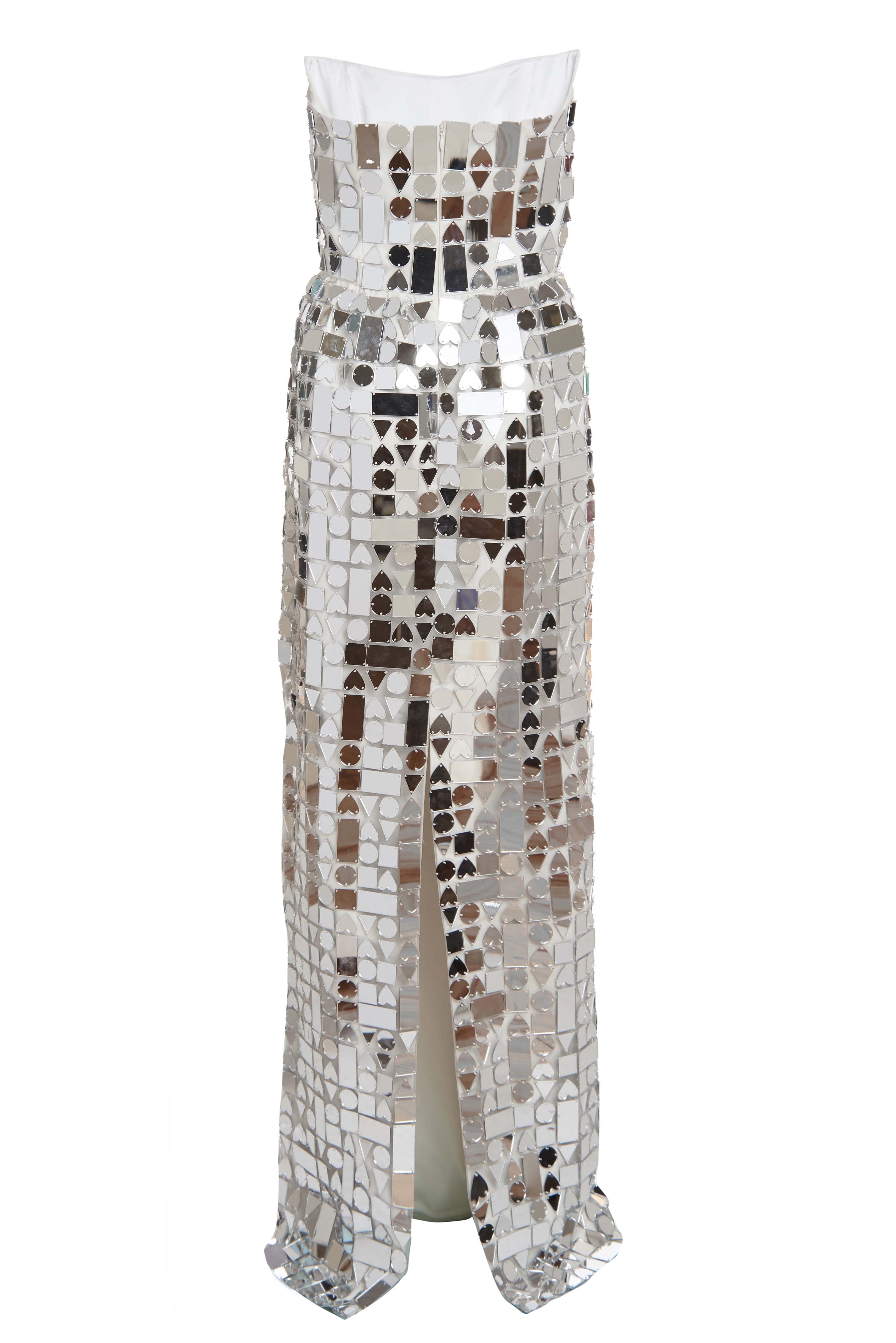 - Mirror Evora strapless gown with mirror embellishments and back slit
