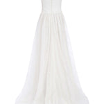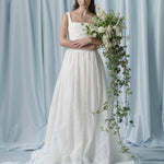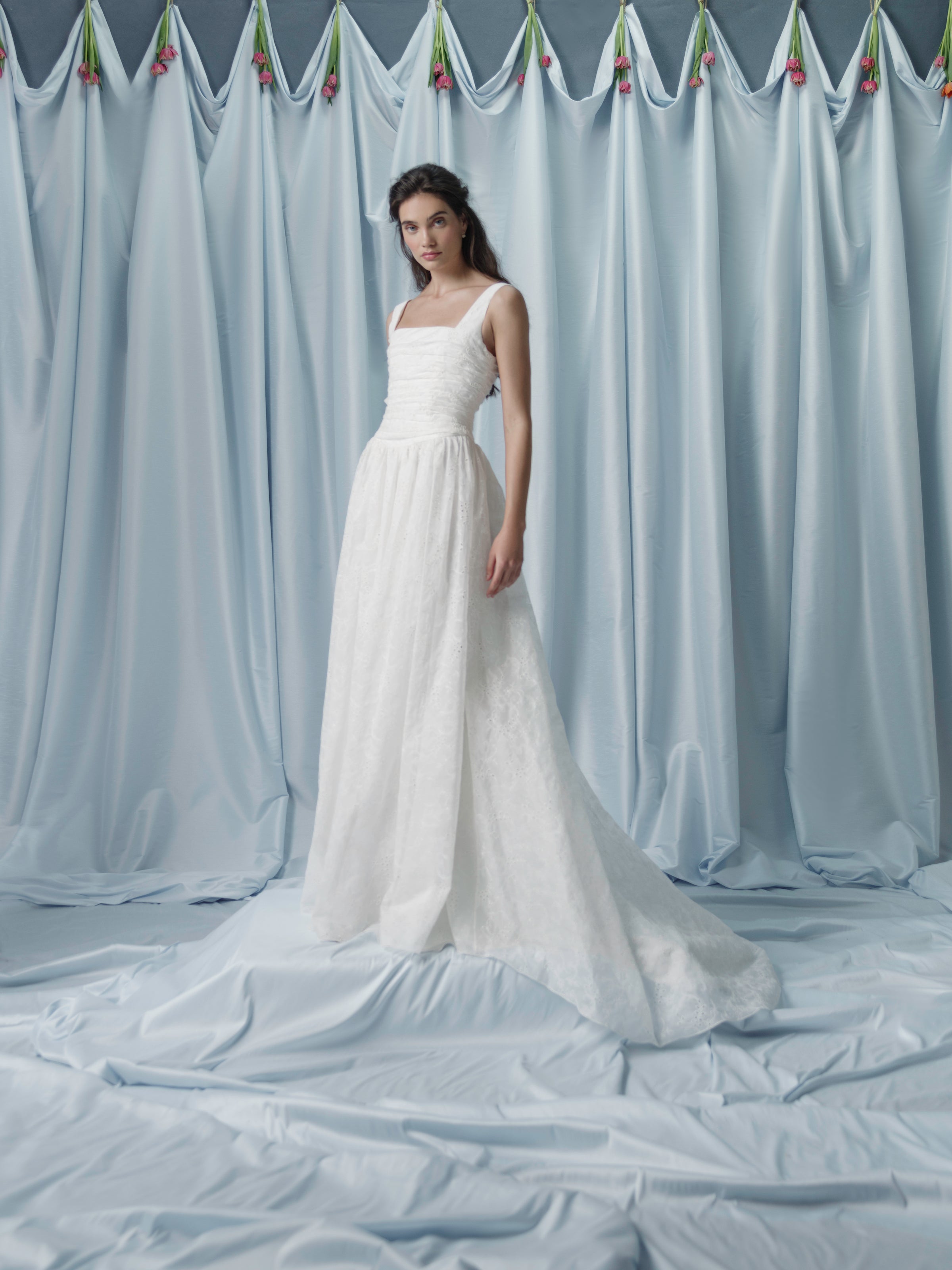 - Ivory floral embroidered ruched bodice a-line gown, fully lined