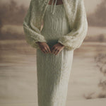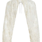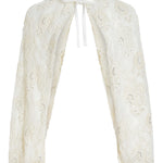 - Ivory beaded lace cropped long sleeve jacket with satin tie closure at neck, fully lined