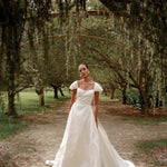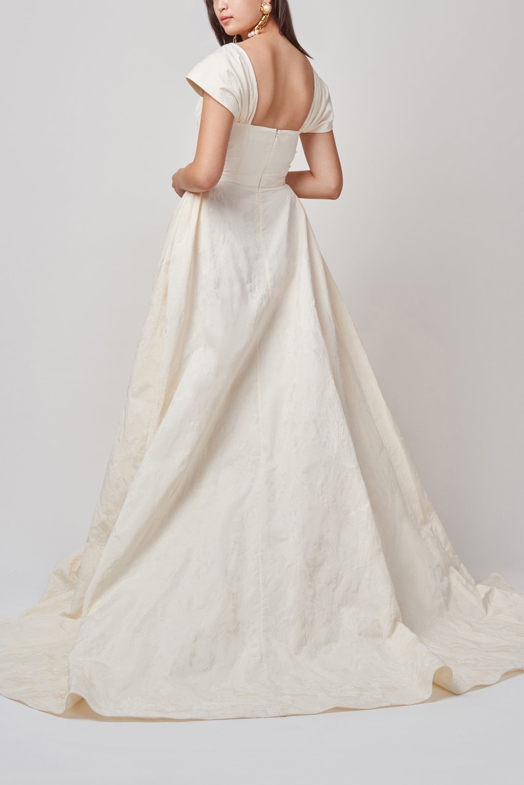 - Idra Ivory Brocade Gown with pleated side details and train