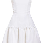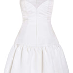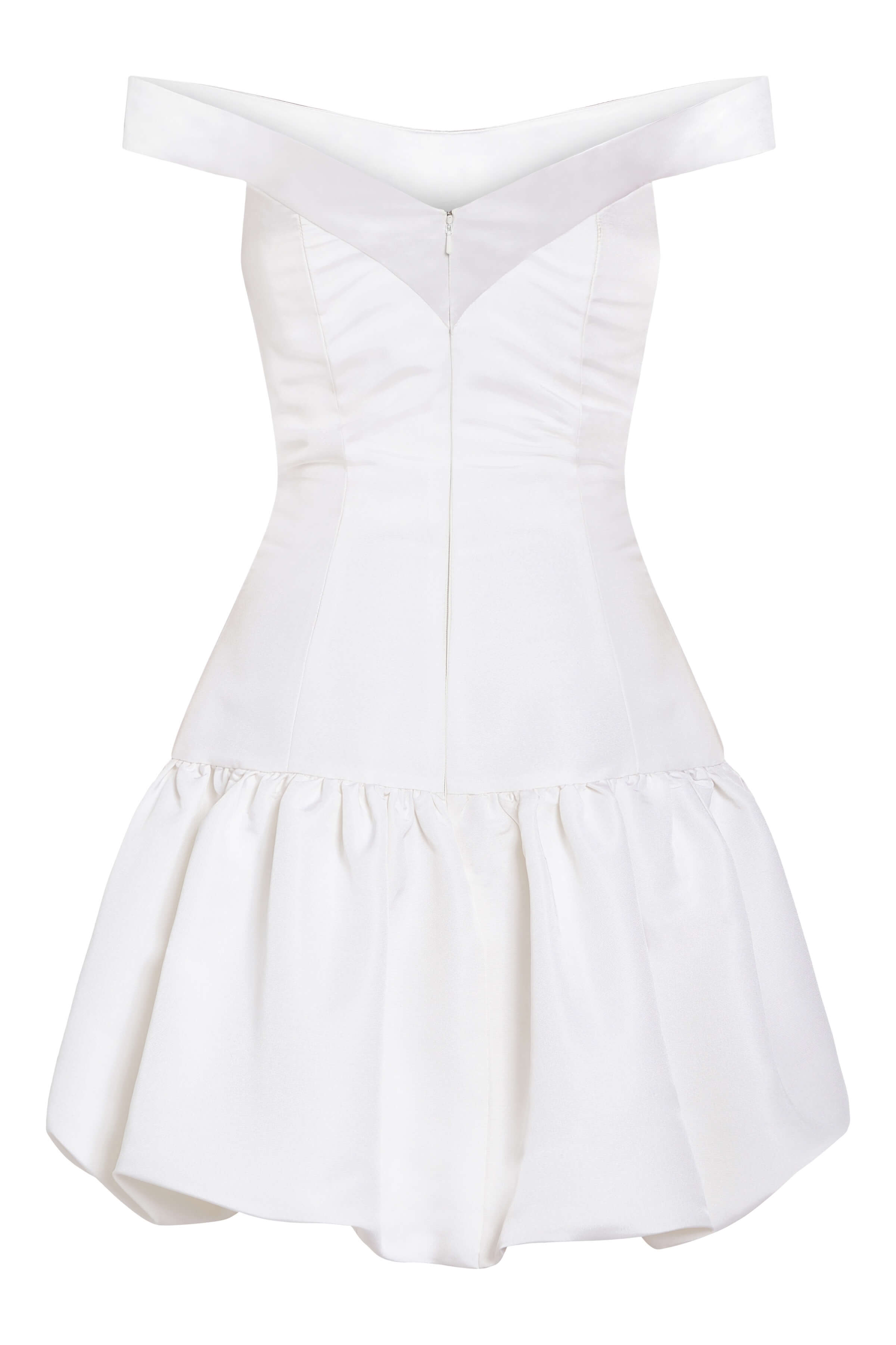- Off-white silk faille off-the-shoulder drop waist bubble hem mini dress with satin neckline, fully lined