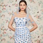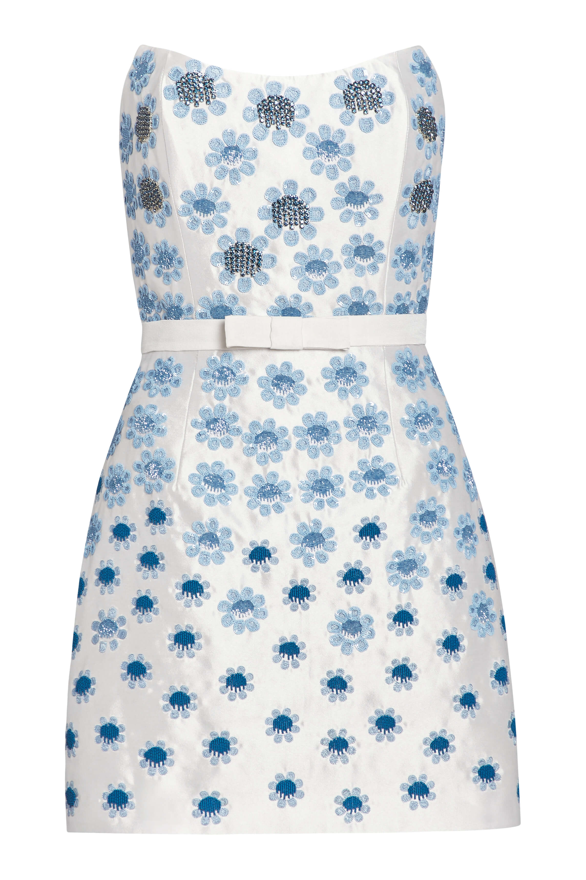 Lulu White Silk Mini Dress With Blue Daisy Beading