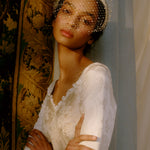 Lunella Grosgrain Headband with Swarovski Pearl Dotted French Veiling