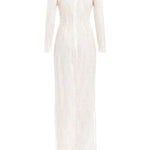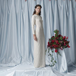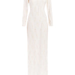 - Ivory beaded floral lace long sleeve gown, fully lined