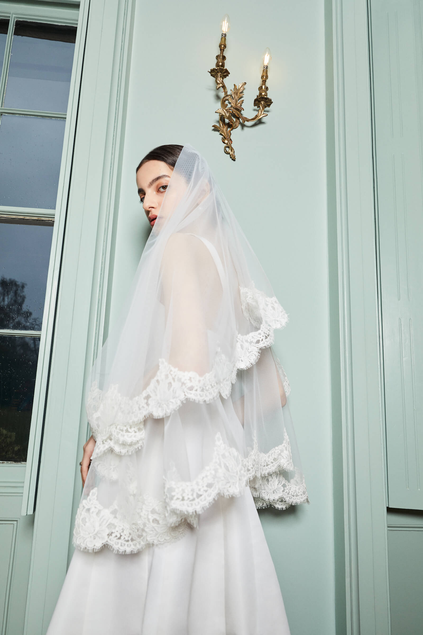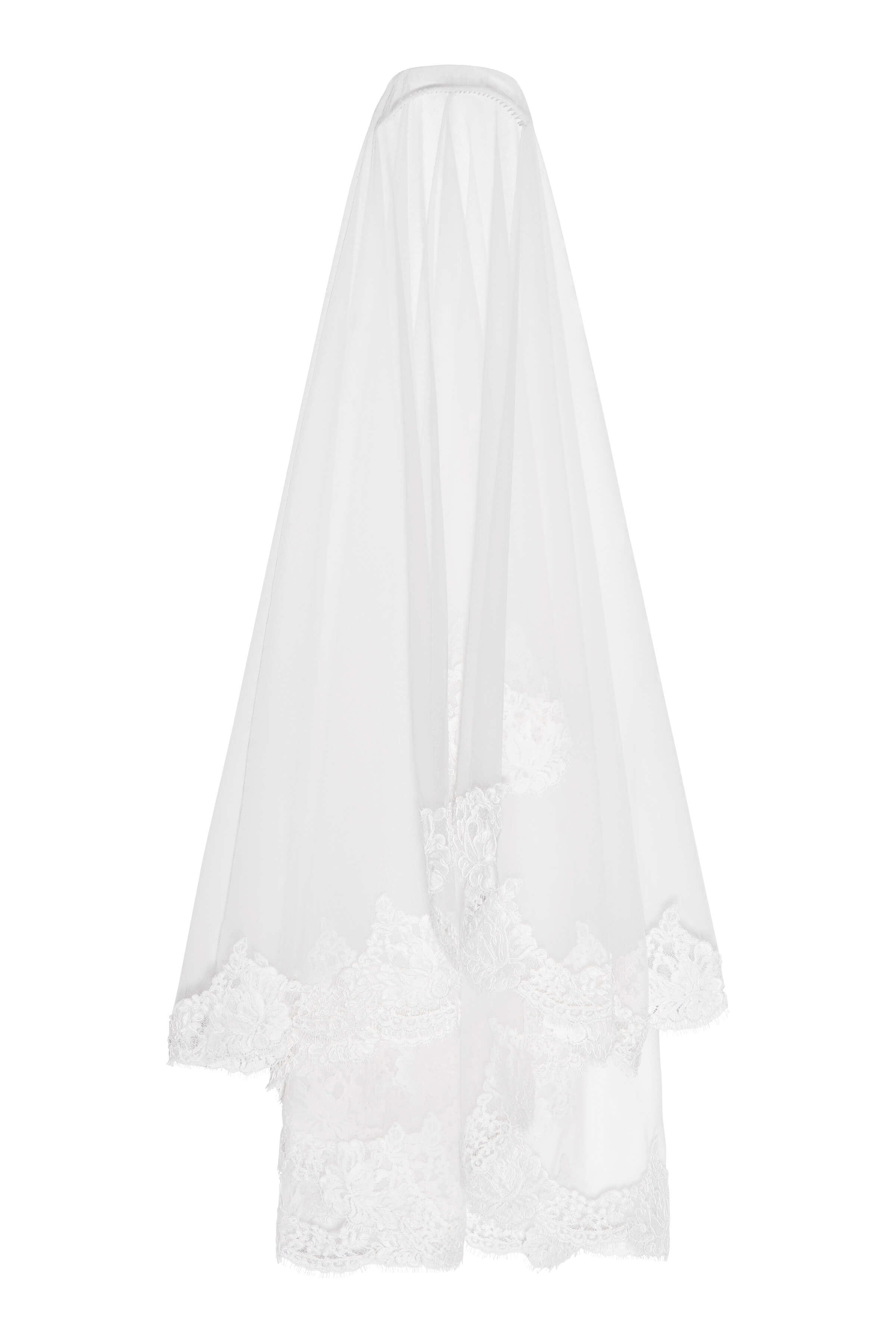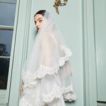 - White circle veil with lace edging made in partnership with Gigi Burris Millinery