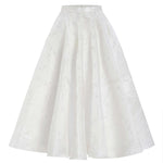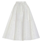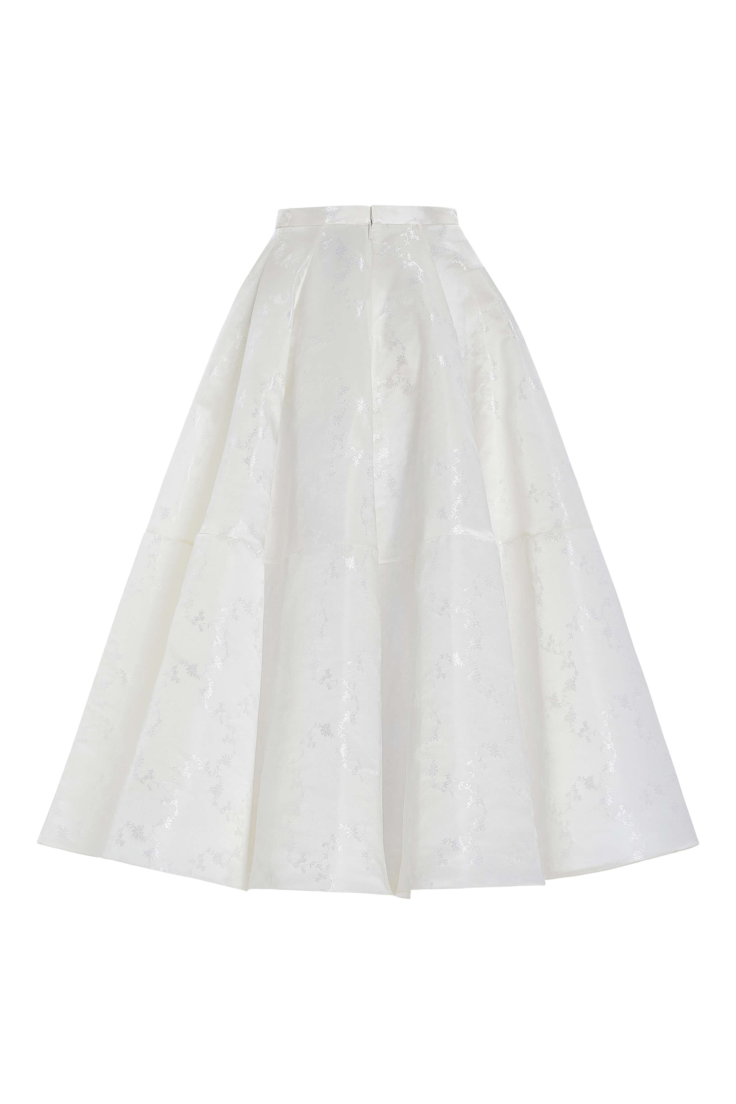 - Off-white floral satin jacquard tiered full midi skirt, fully lined