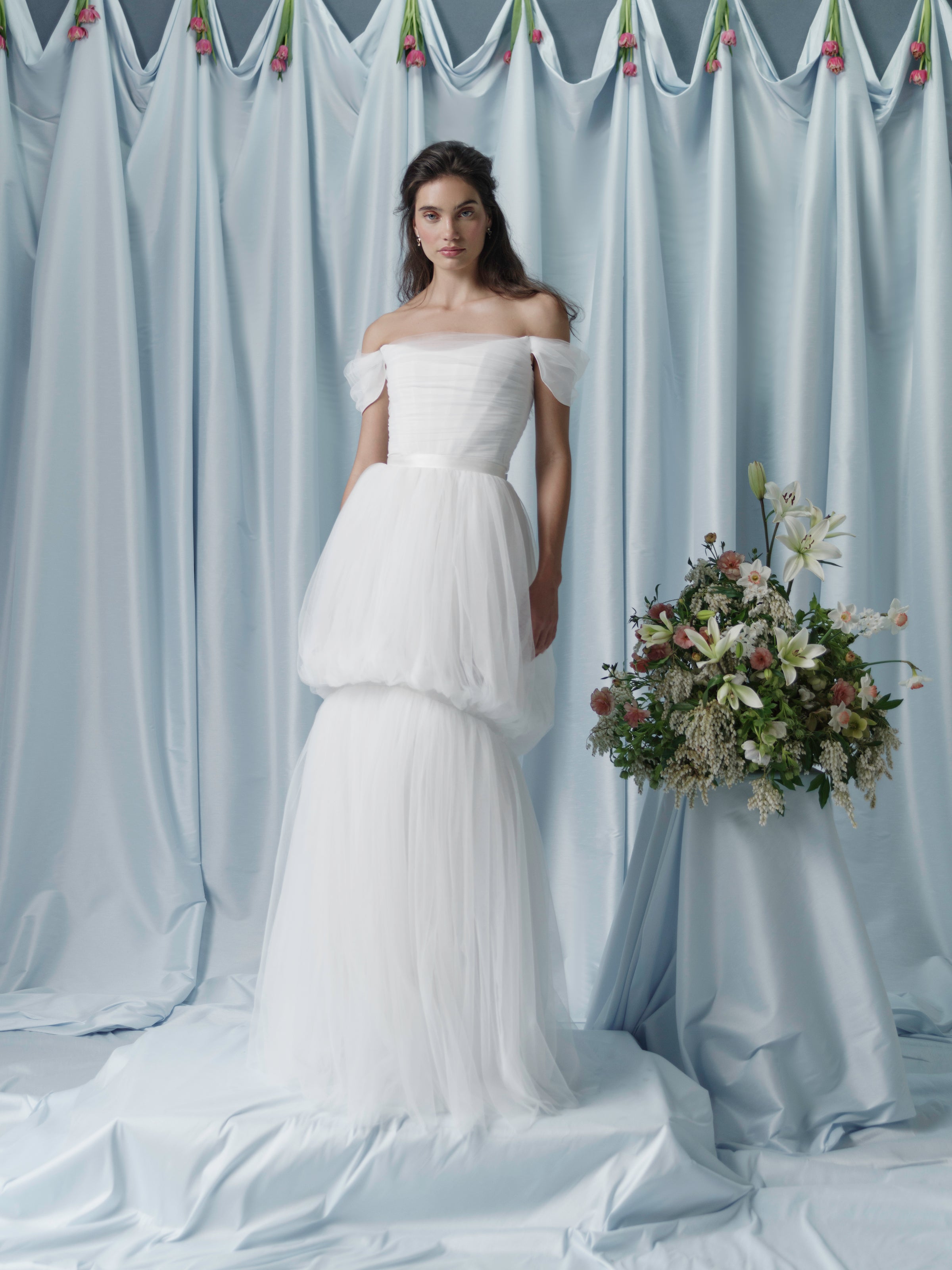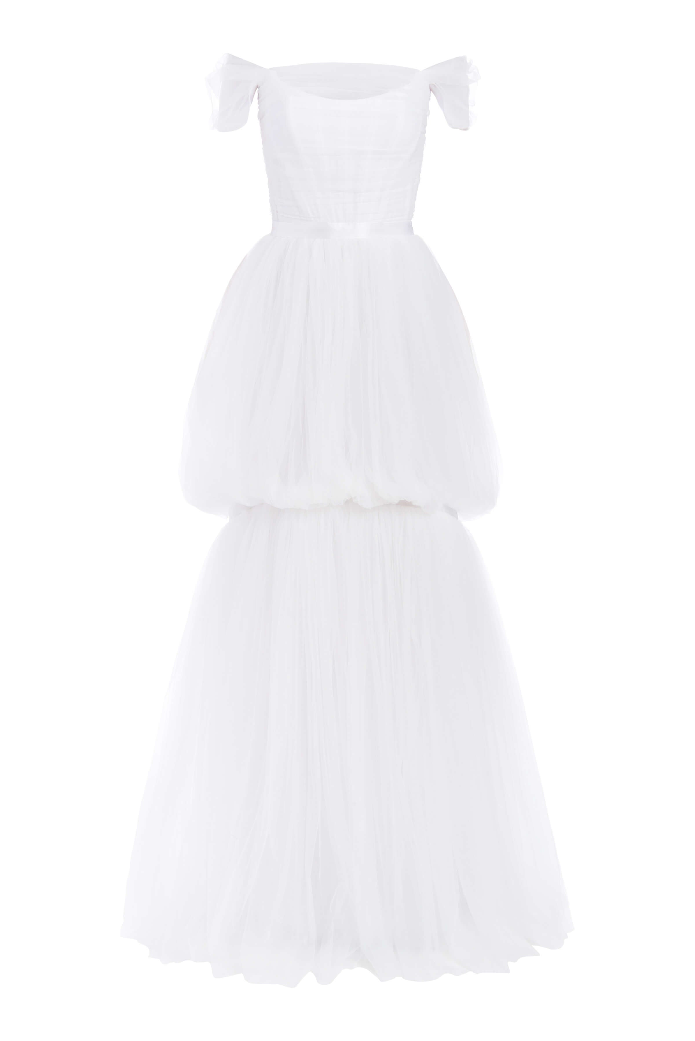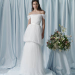 Valeria Off-The-Shoulder Ruched Tulle Gown