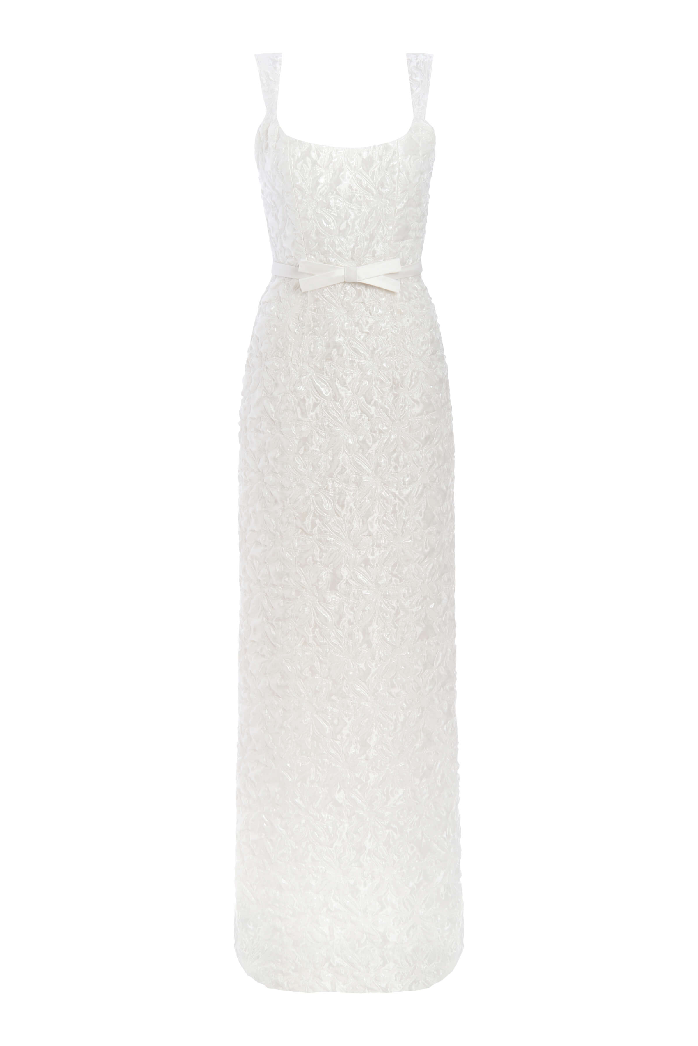 Sylvie White Silk Paneled Column Gown With Daisy Beading