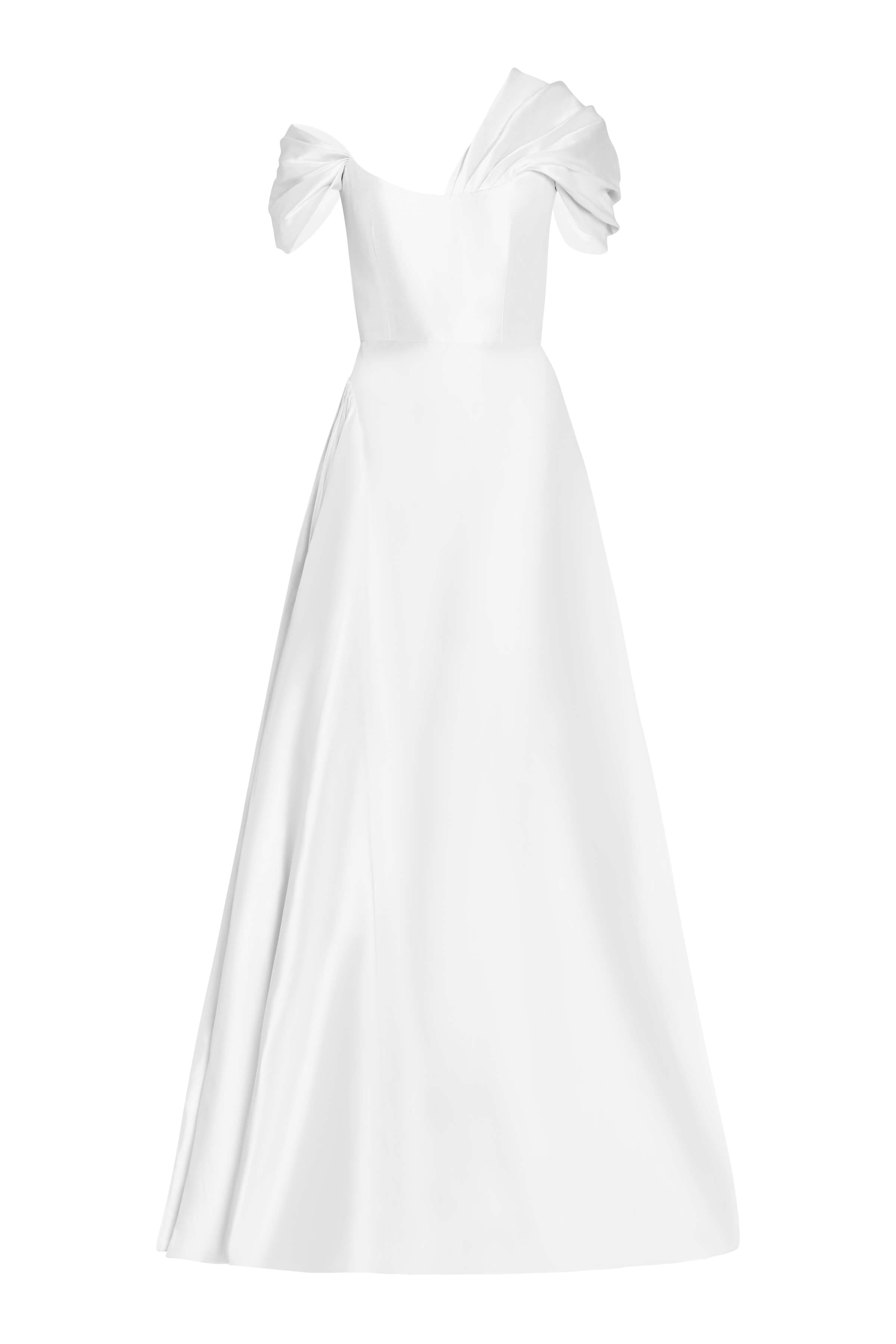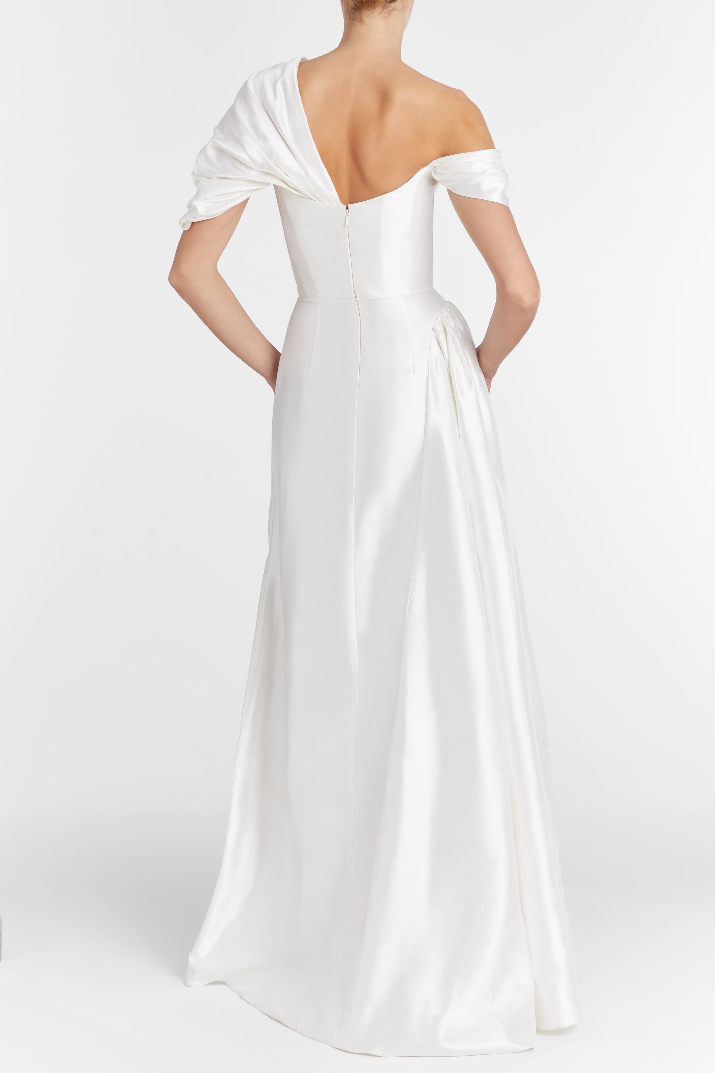 Edith White Silk Asymmetric Drape Shoulder Gown