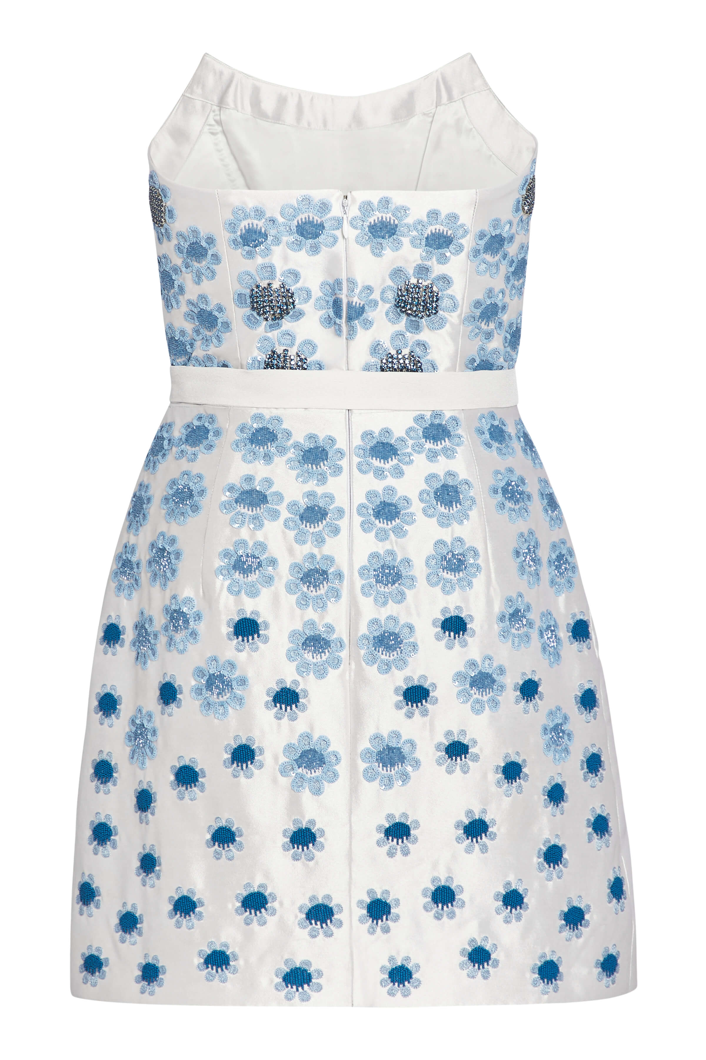 Lulu White Silk Mini Dress With Blue Daisy Beading