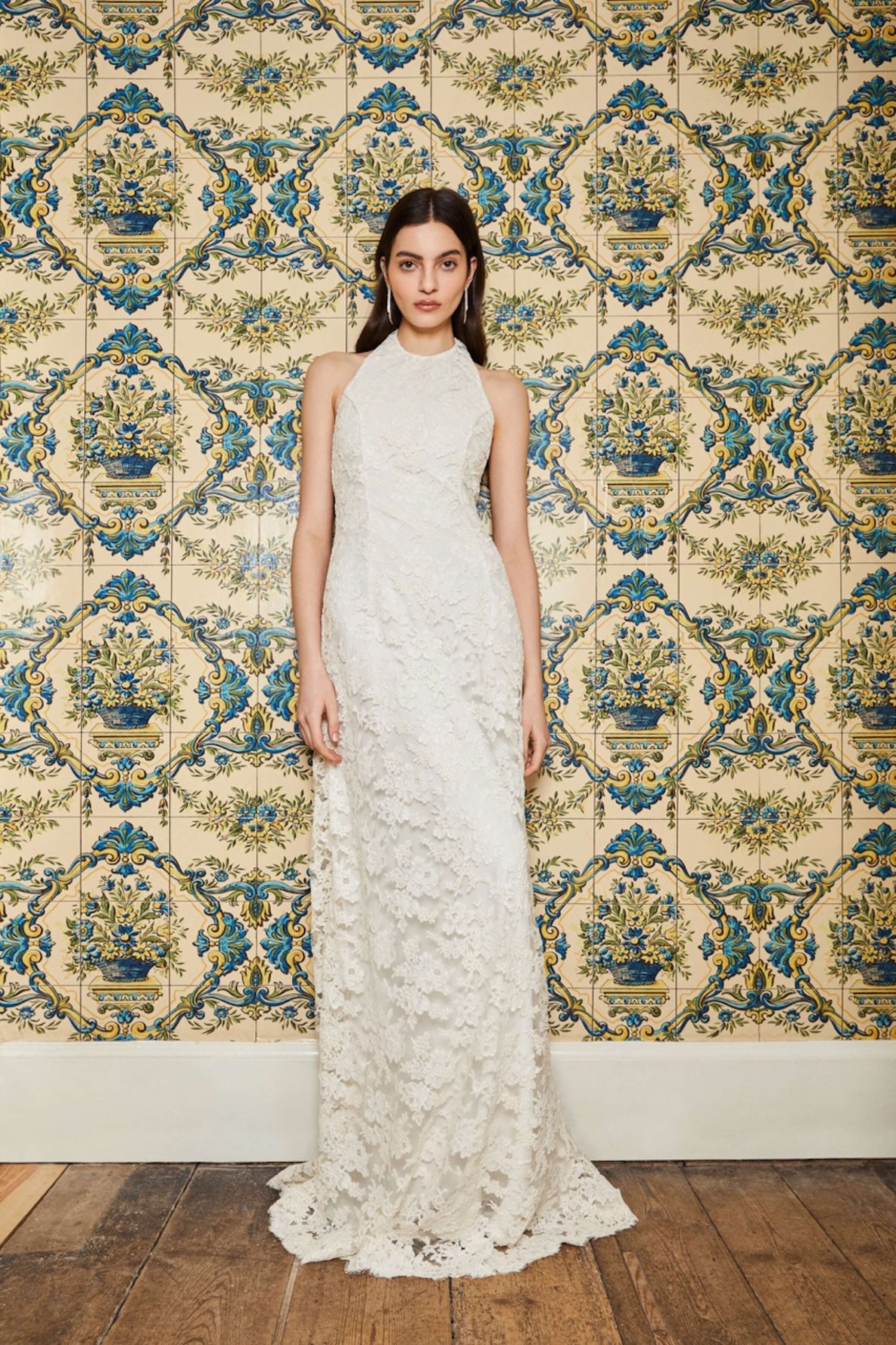 Sophia White Lace Halter Gown