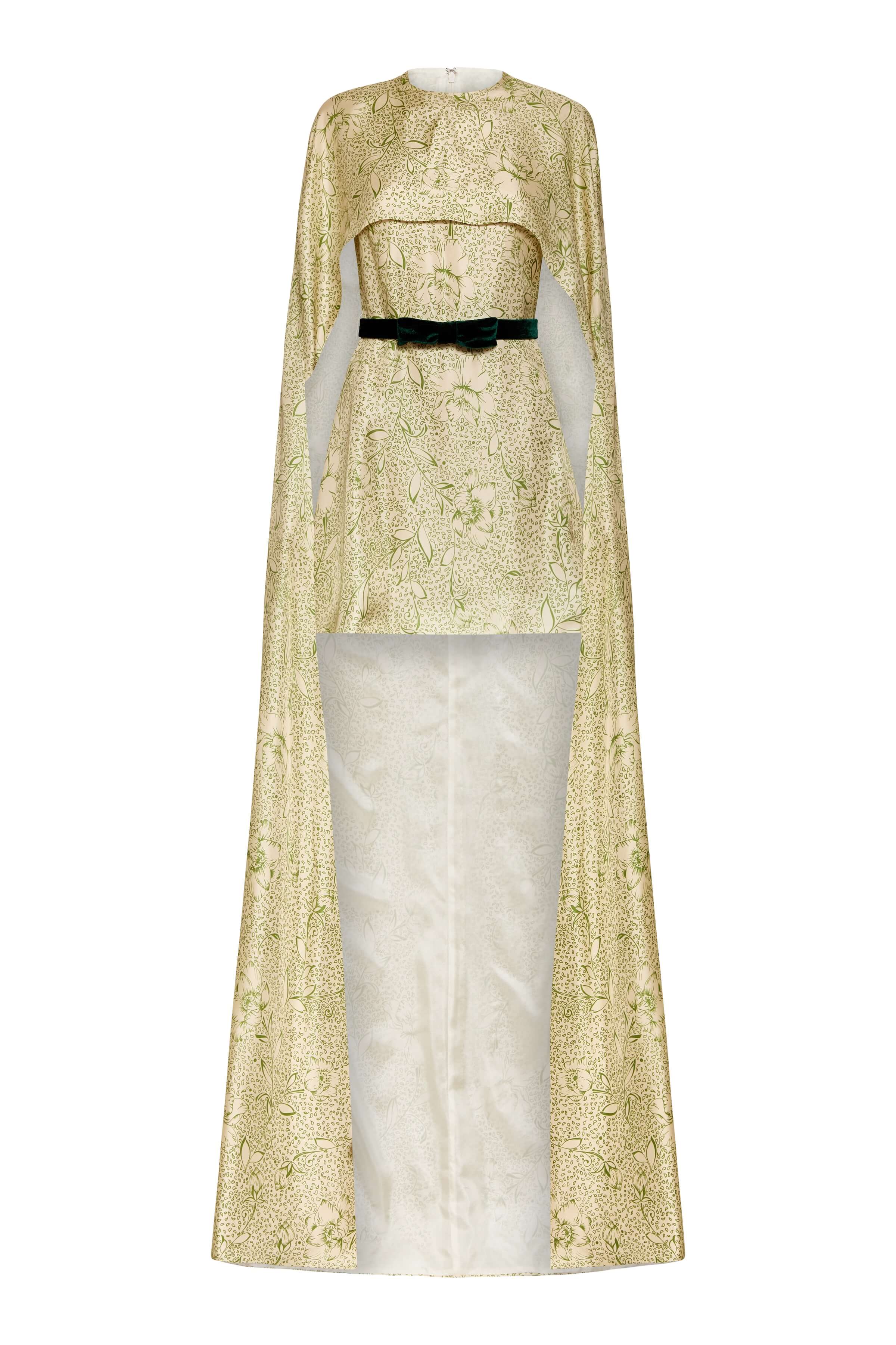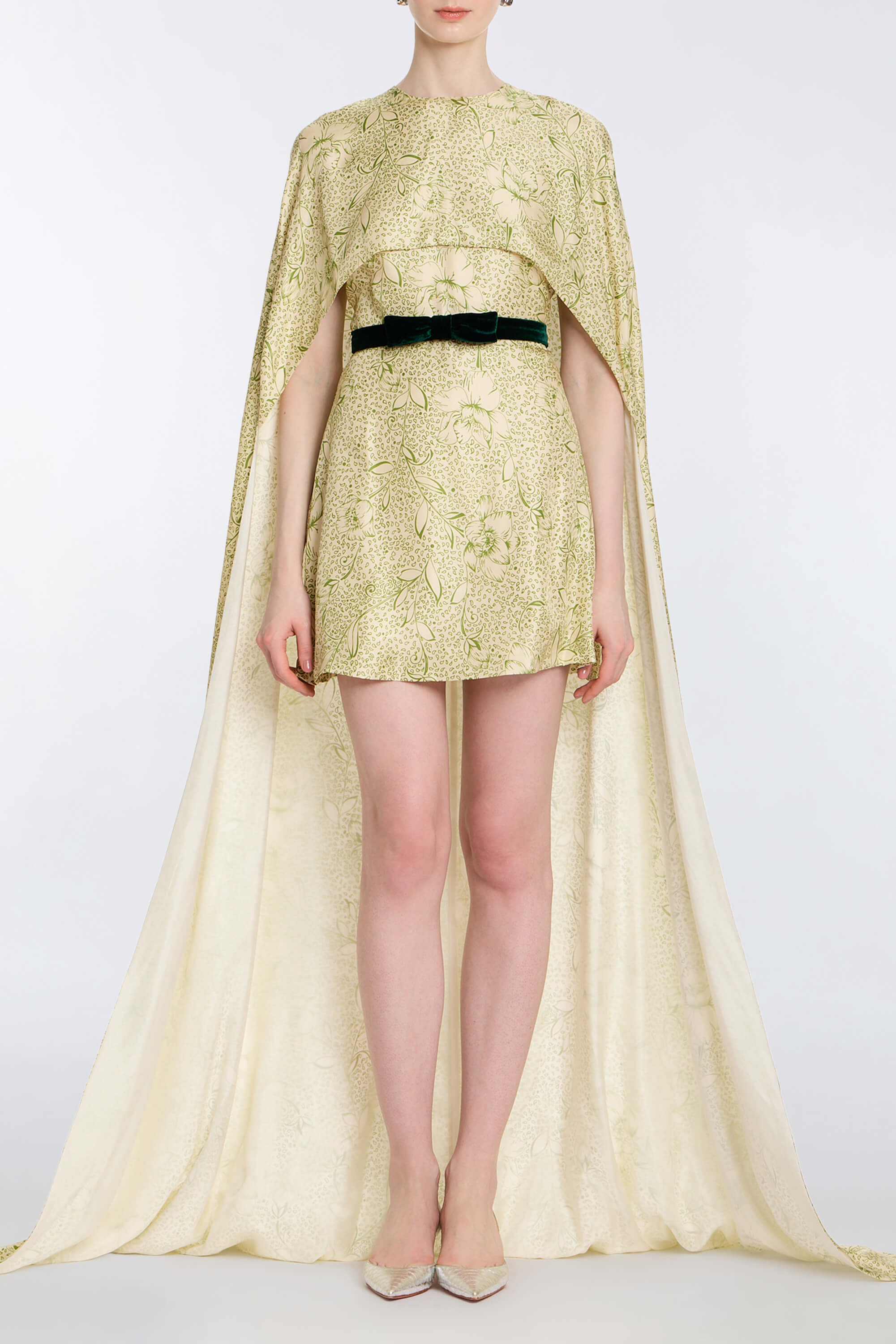 Renee Green Floral Printed Twill Mini Dress With Detachable Cape