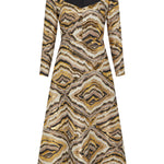 • Metallic black and gold jacquard full sleeve midi a-line dress with square neckline, fully lined