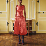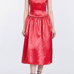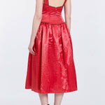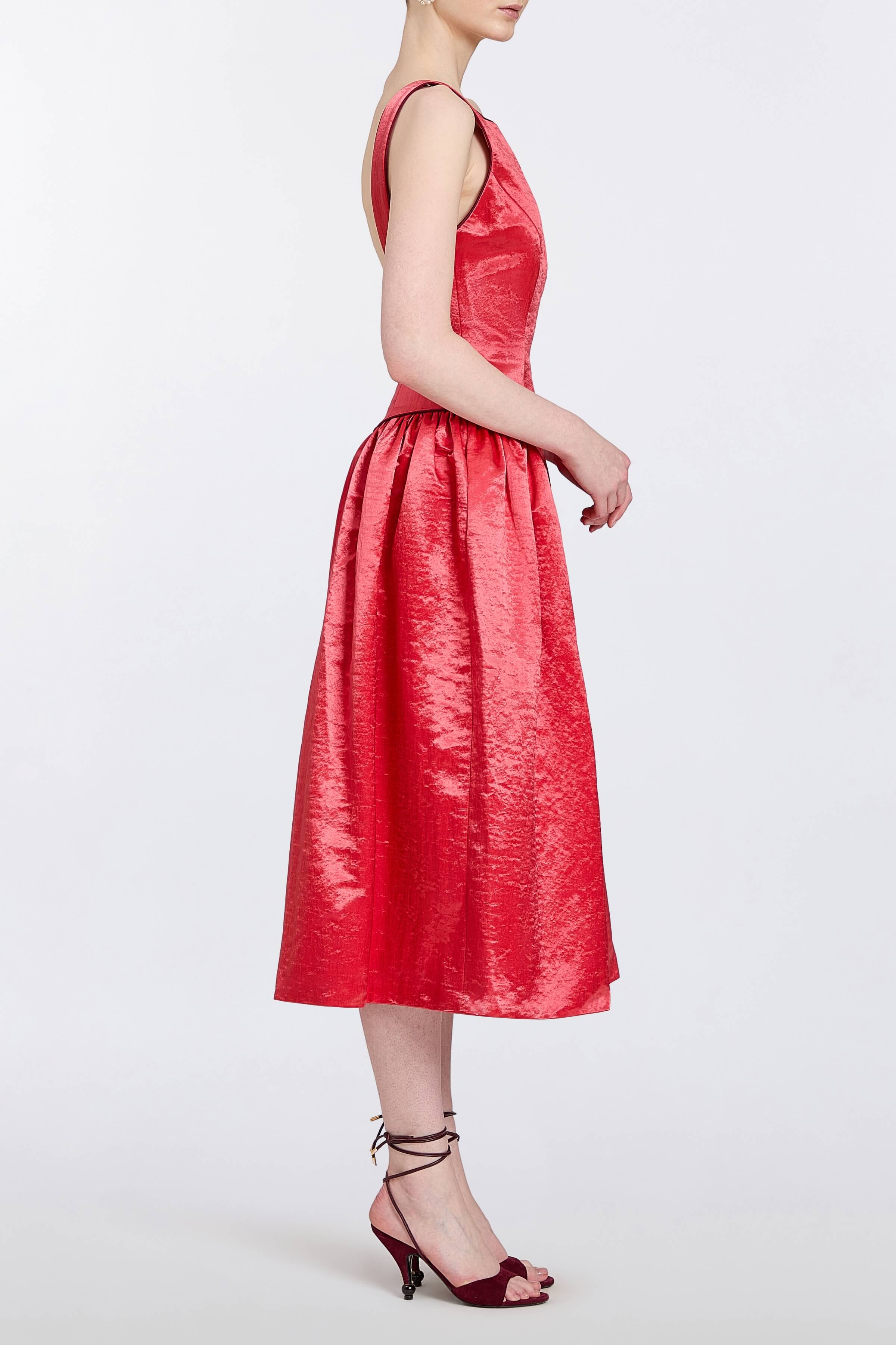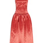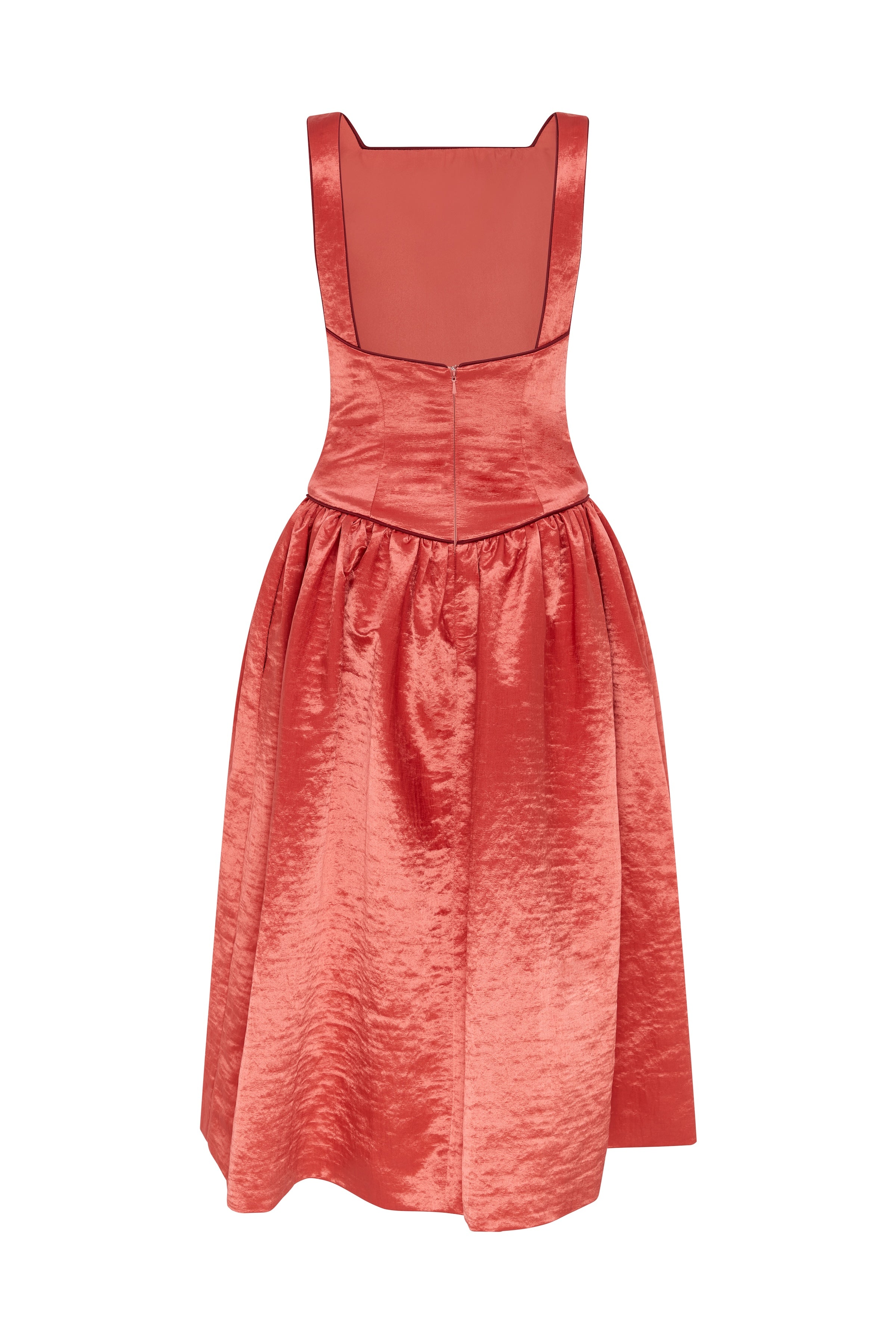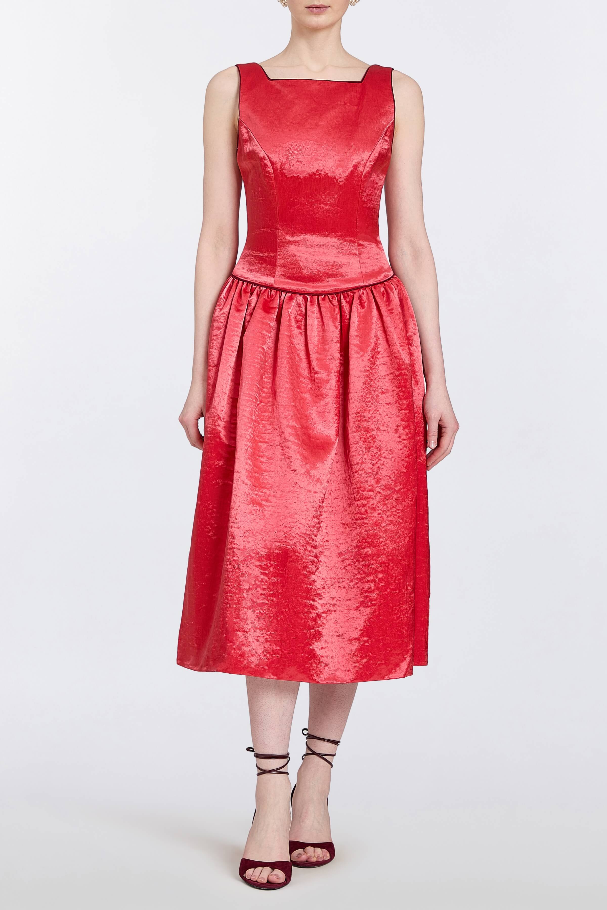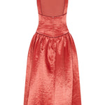 - Pomegranate hammered satin midi dress with pockets and square neckline, fully lined
