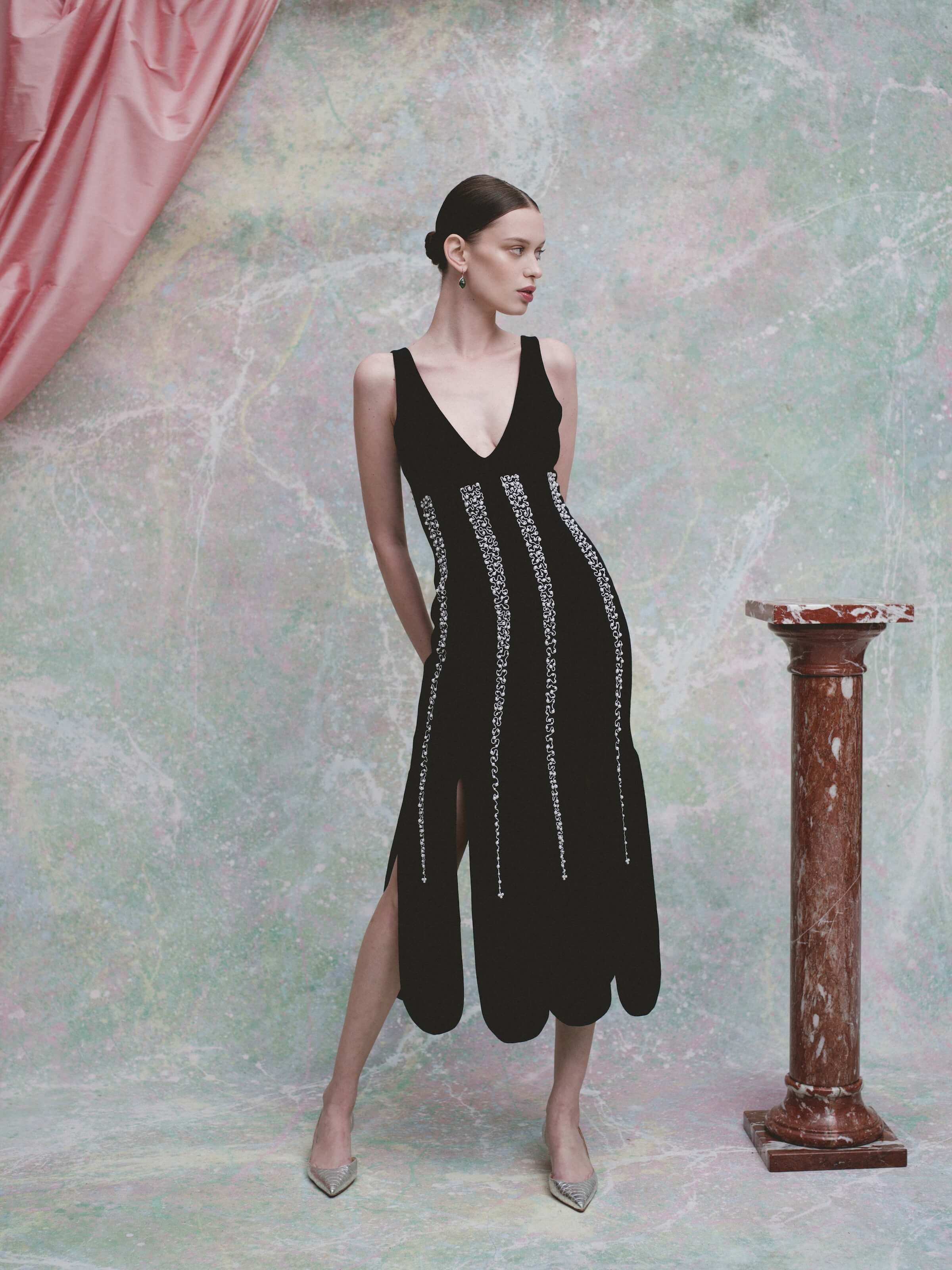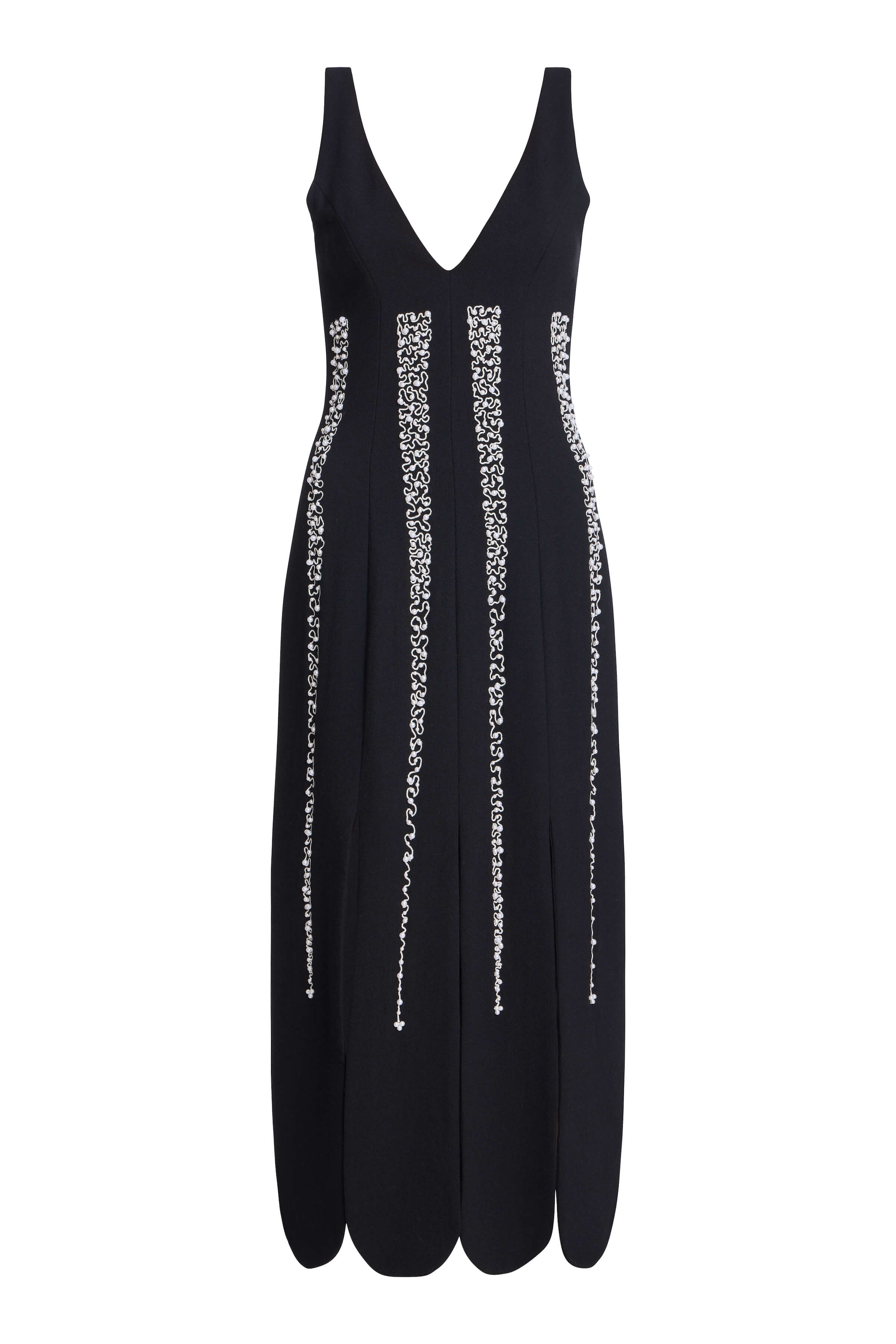 PRE-ORDERBrandy Pearl Stripe Embroidery Midi Dress
