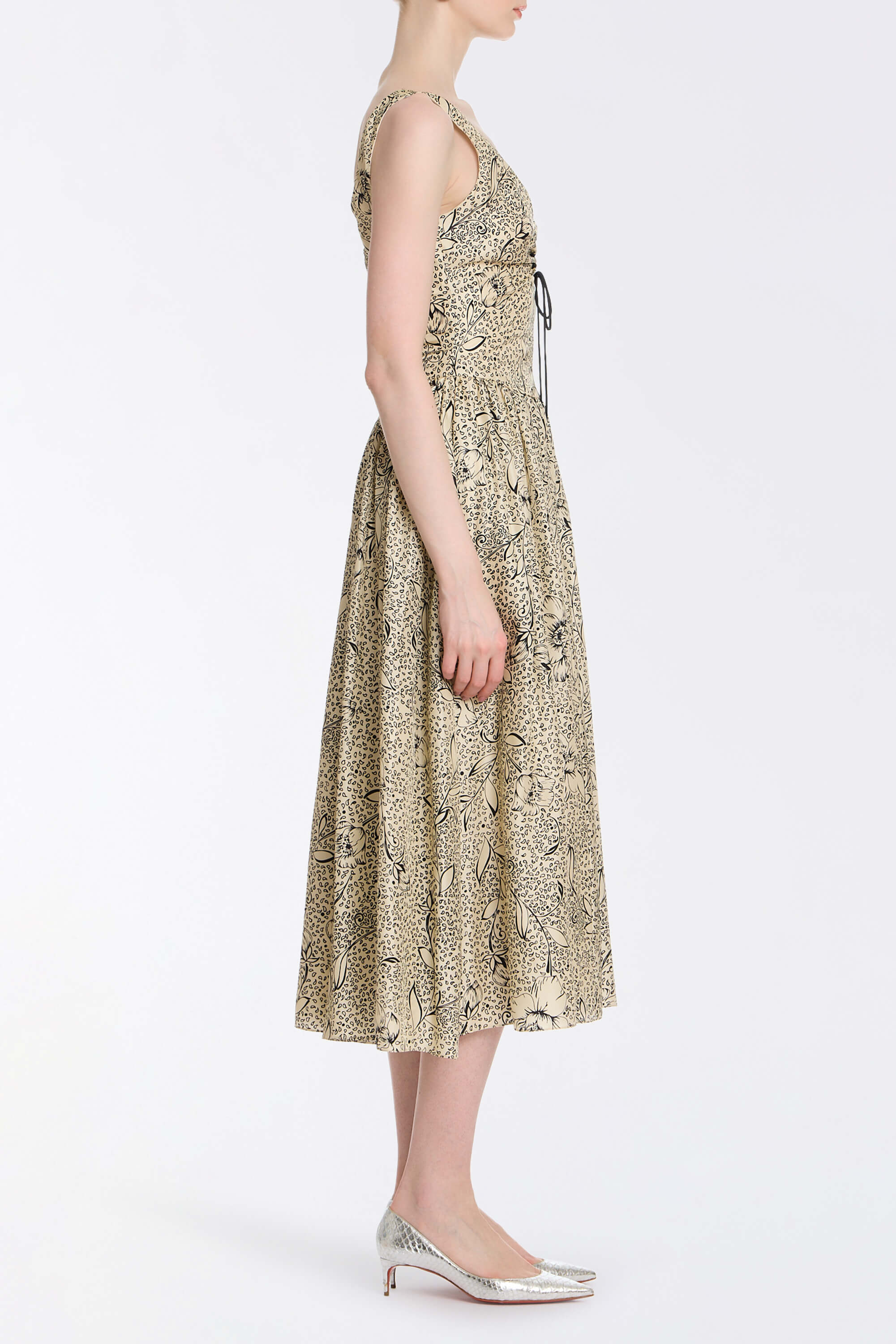 PRE-ORDERPenelope Black Floral Printed Twill Keyhole Midi Dress