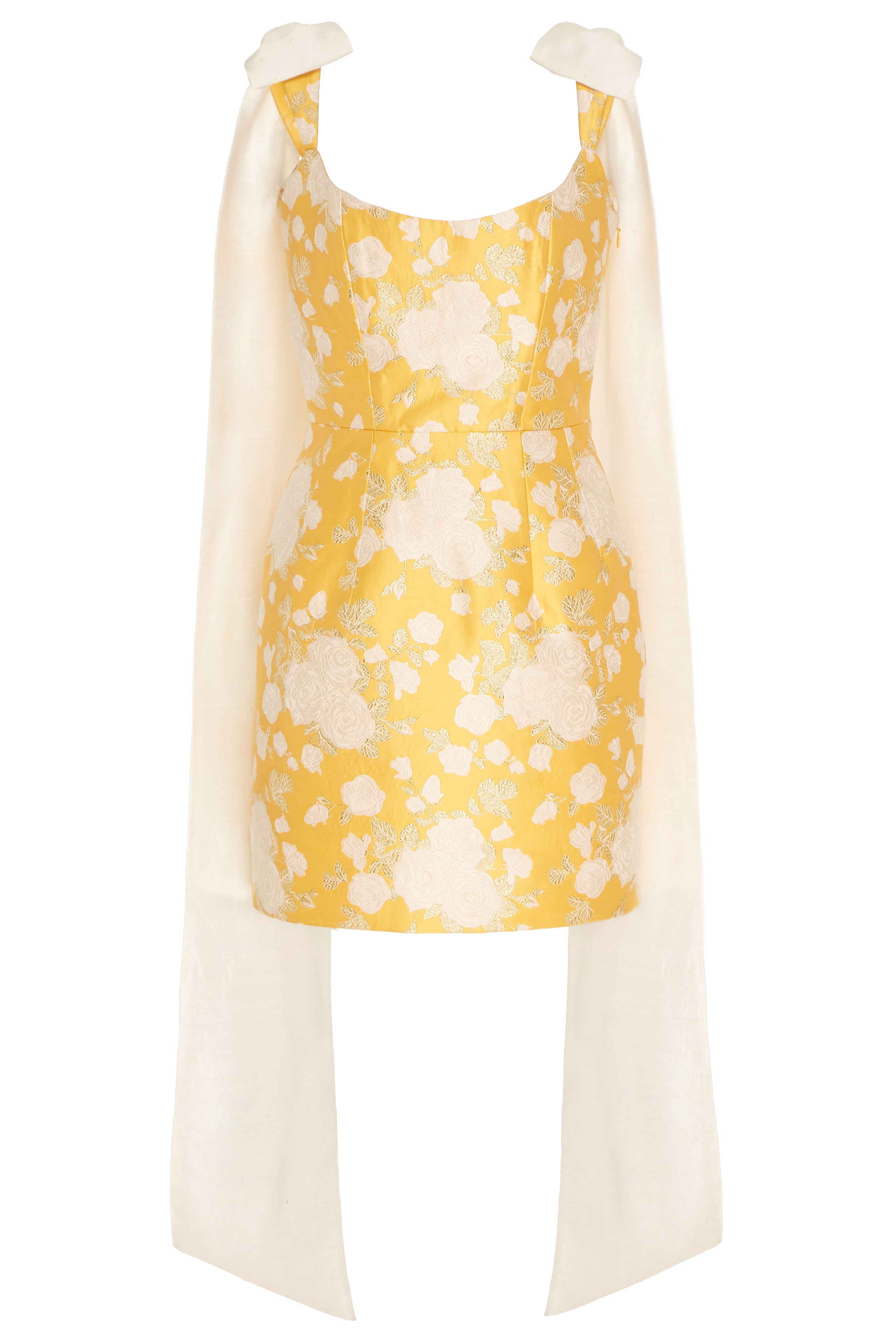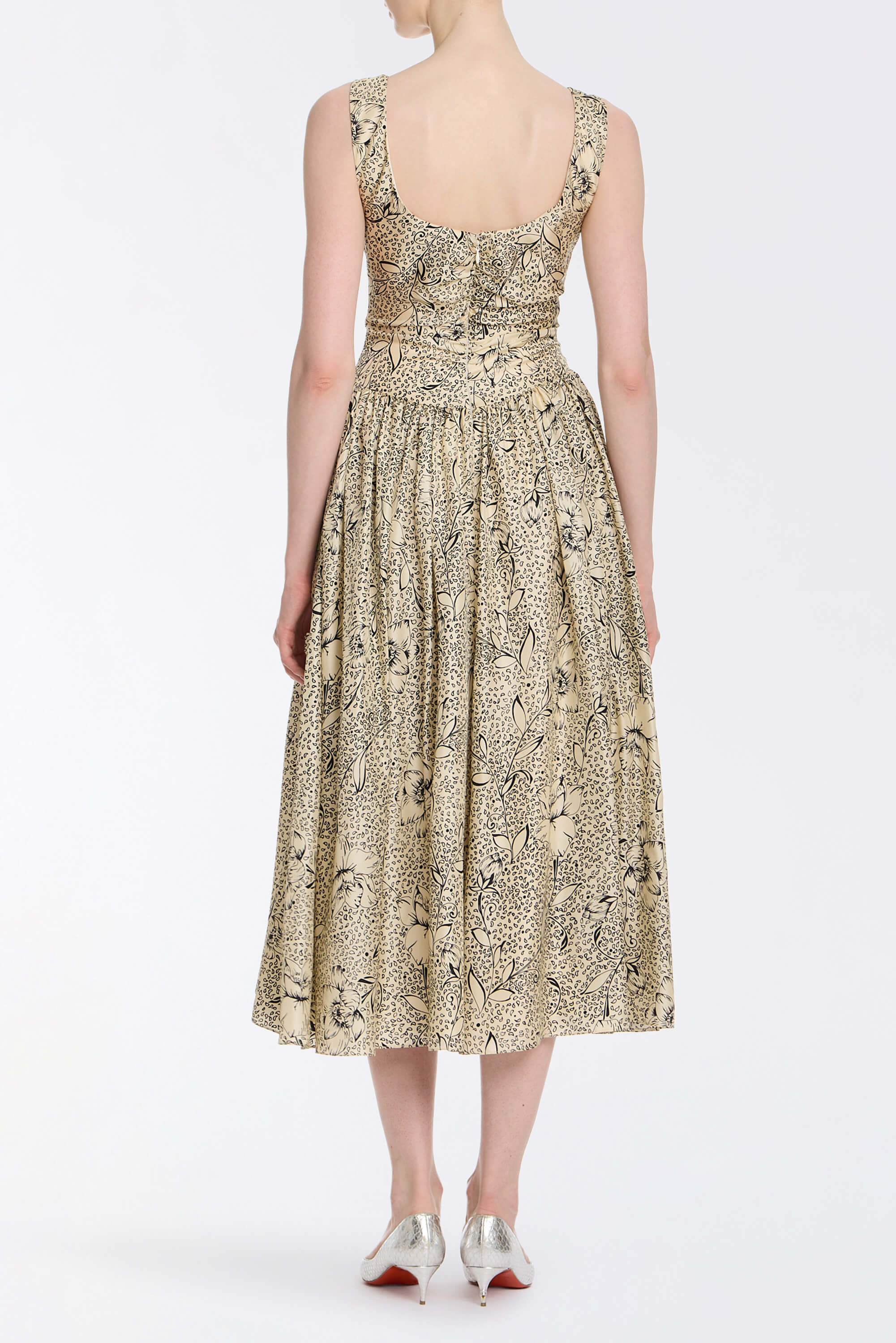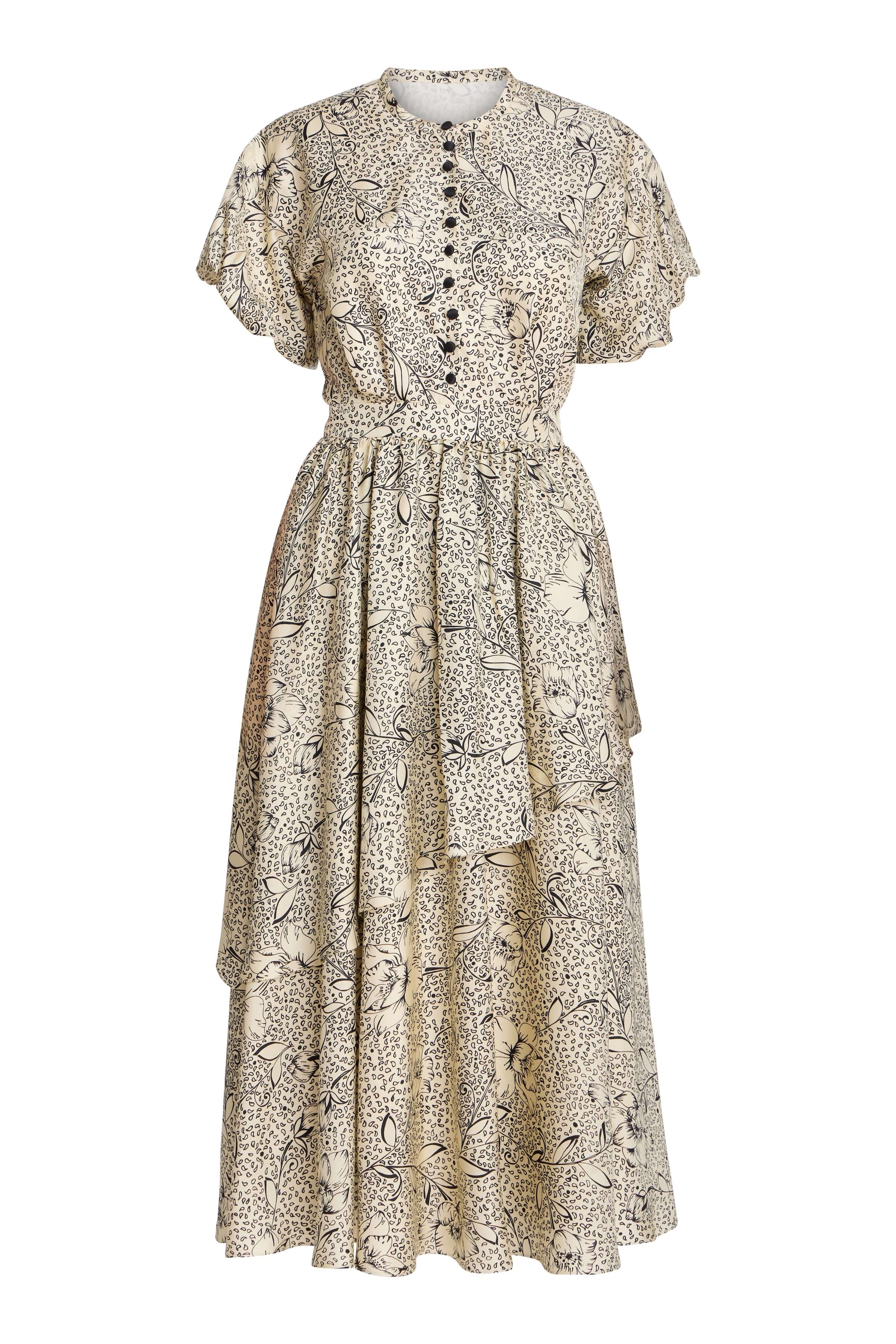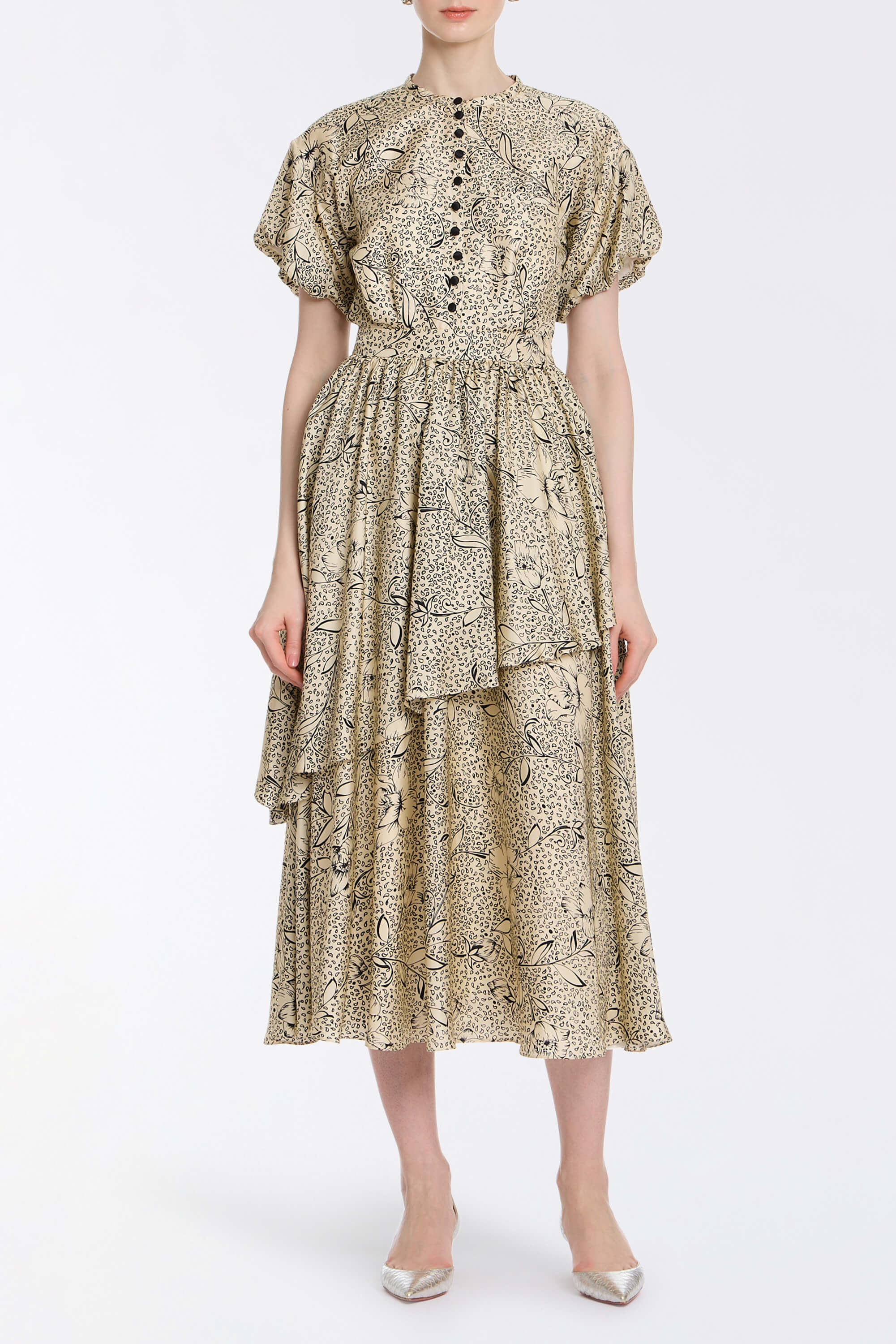 PRE-ORDERVioleta Black Floral Printed Twill Flounce Skirt Midi Dress