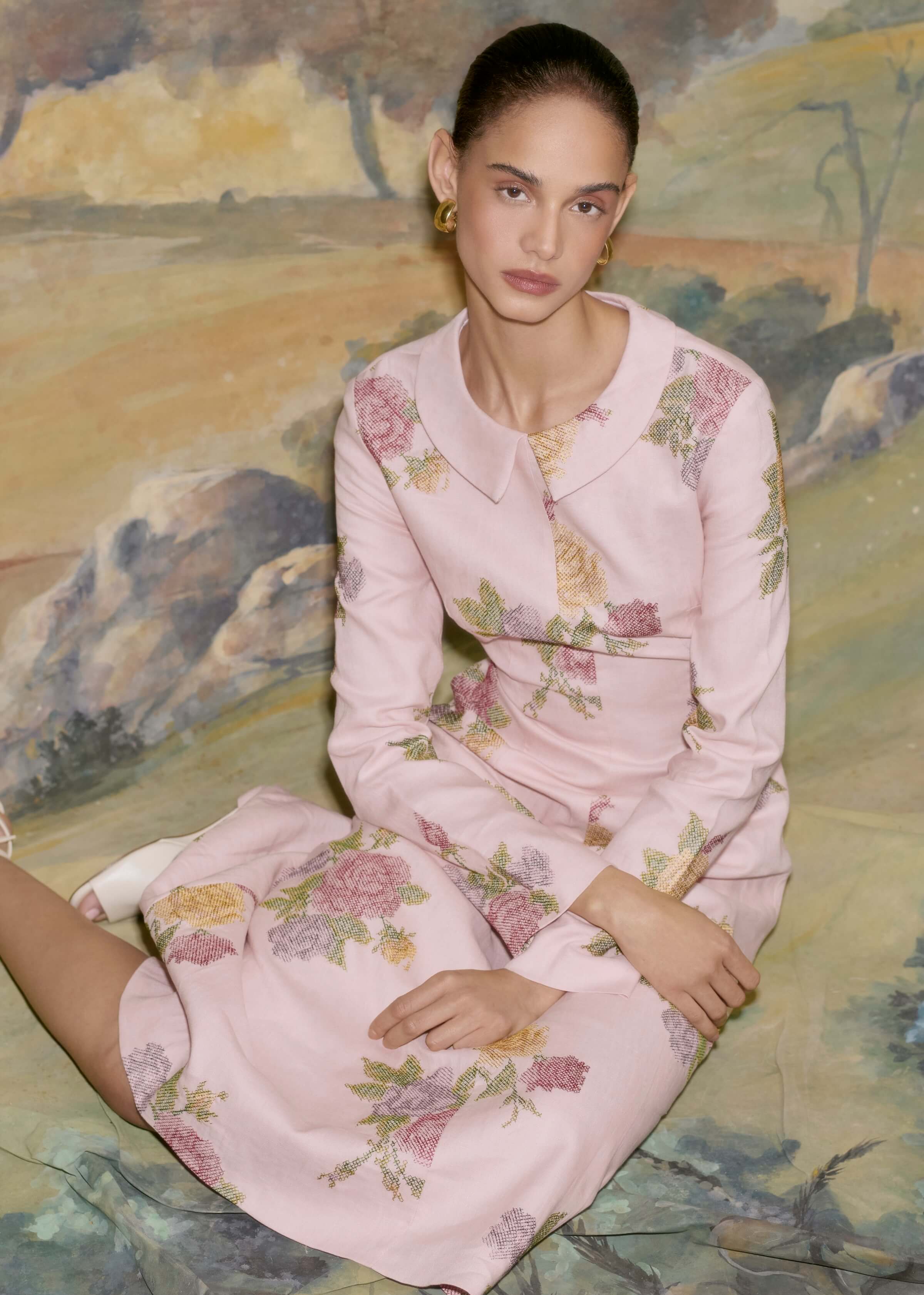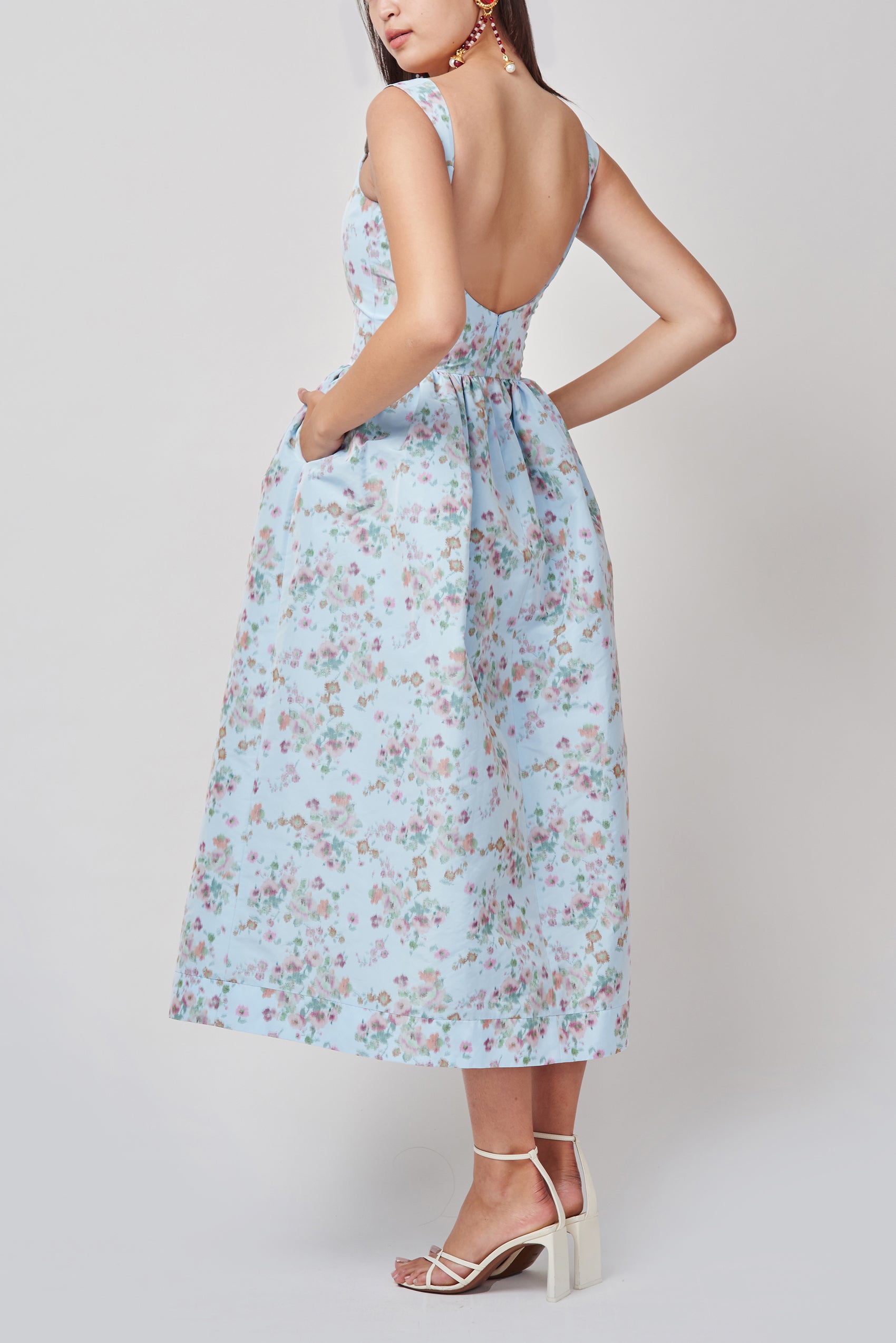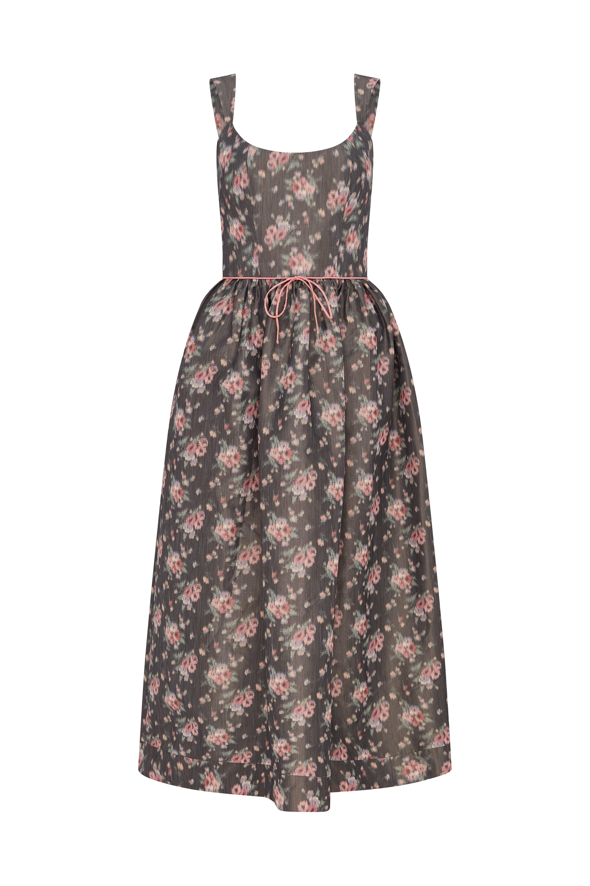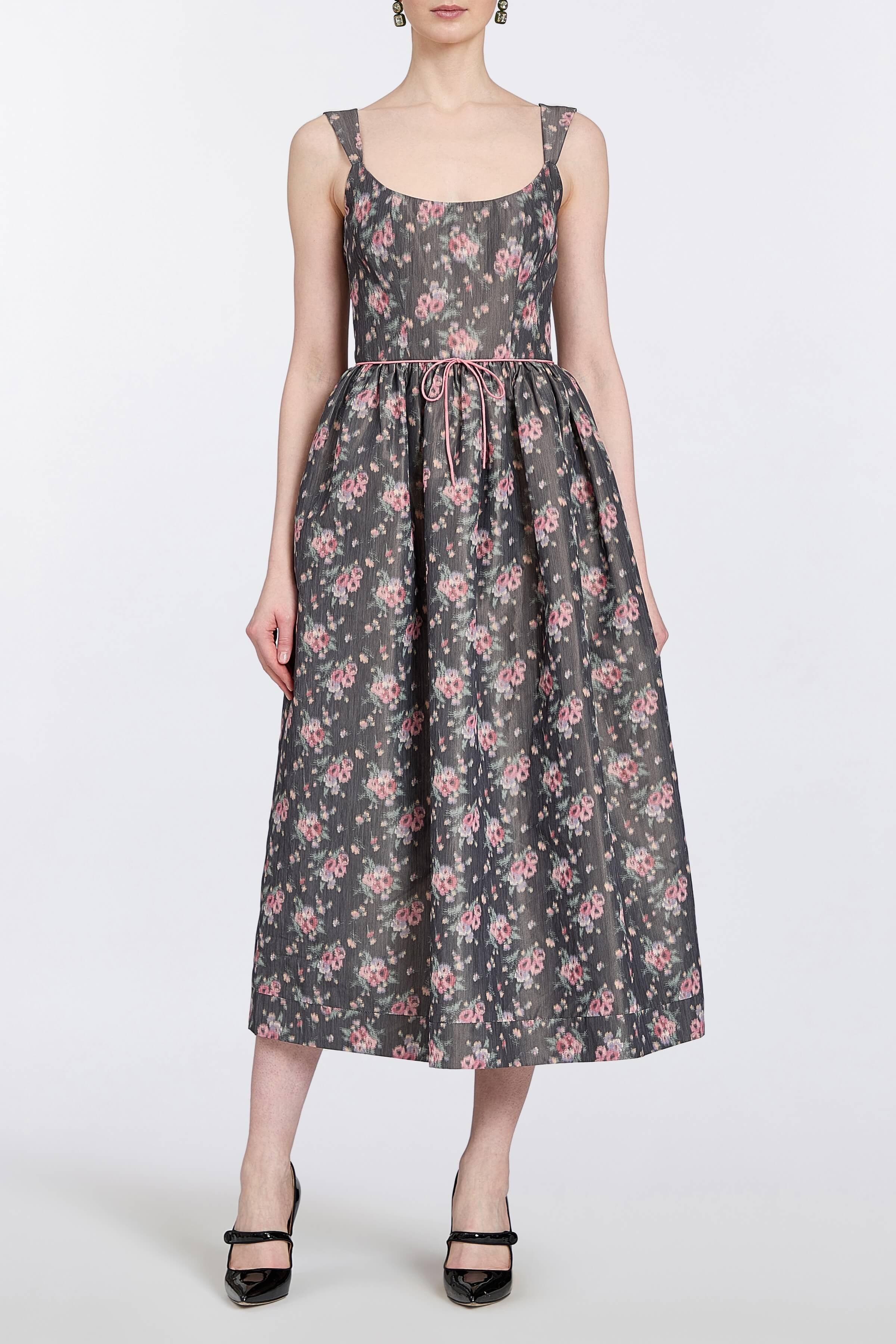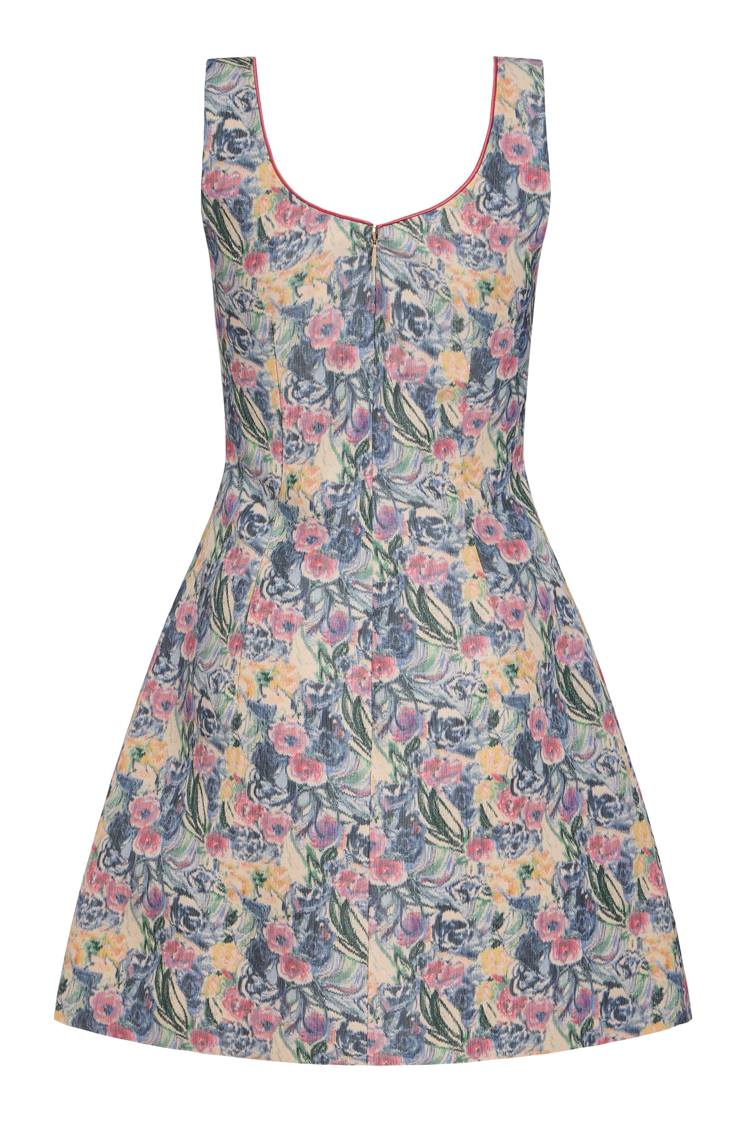 Cecilia Watercolor Floral Ikat Scoop Neck Mini Dress