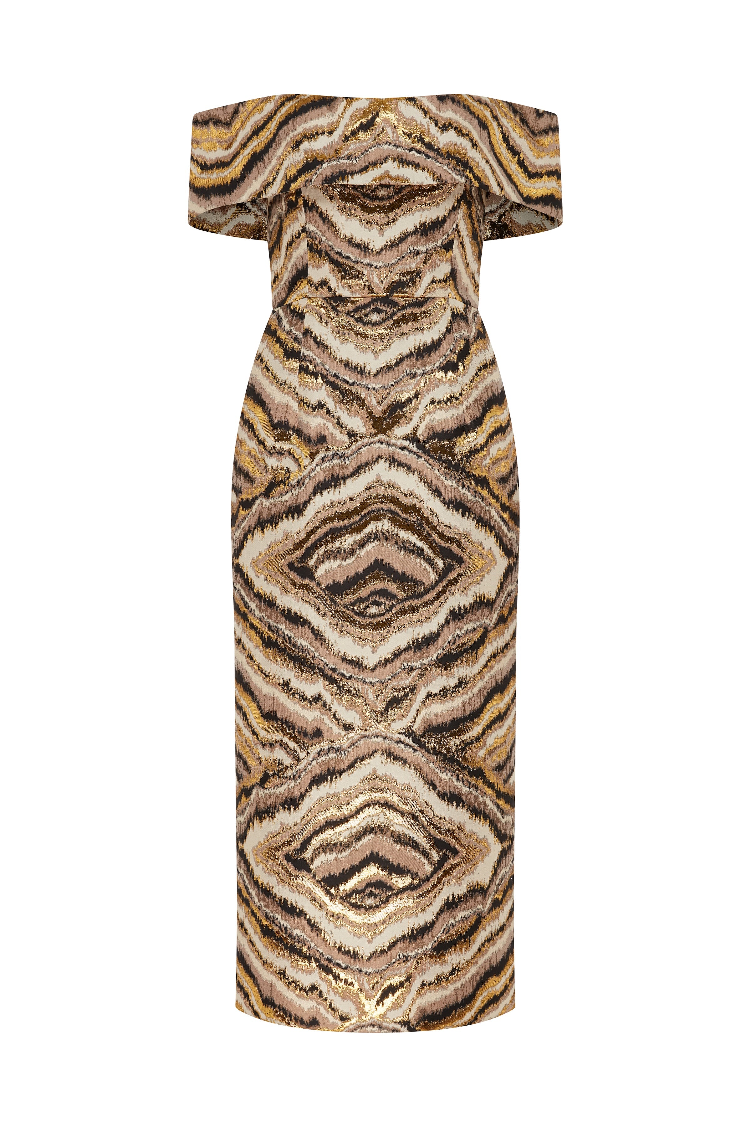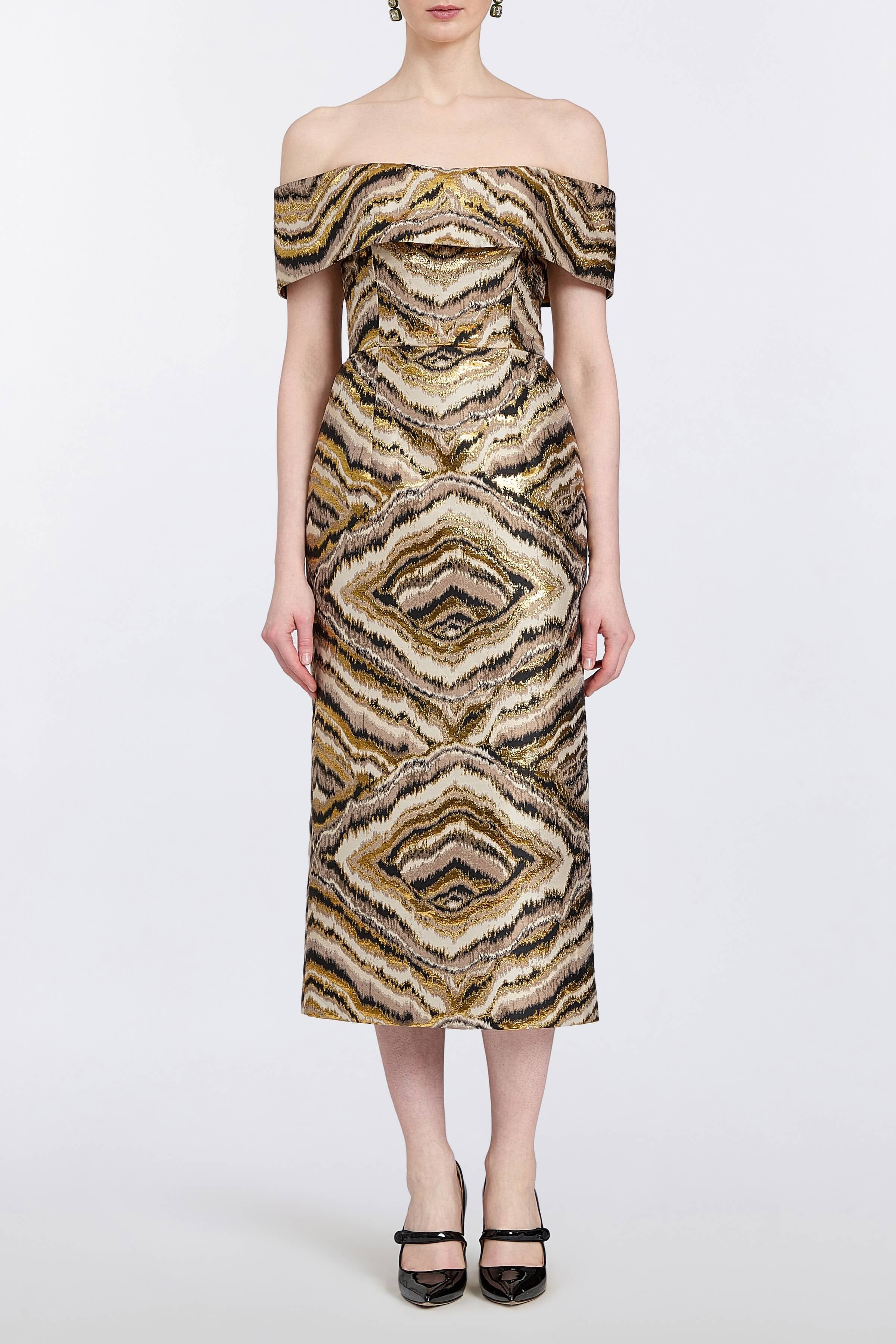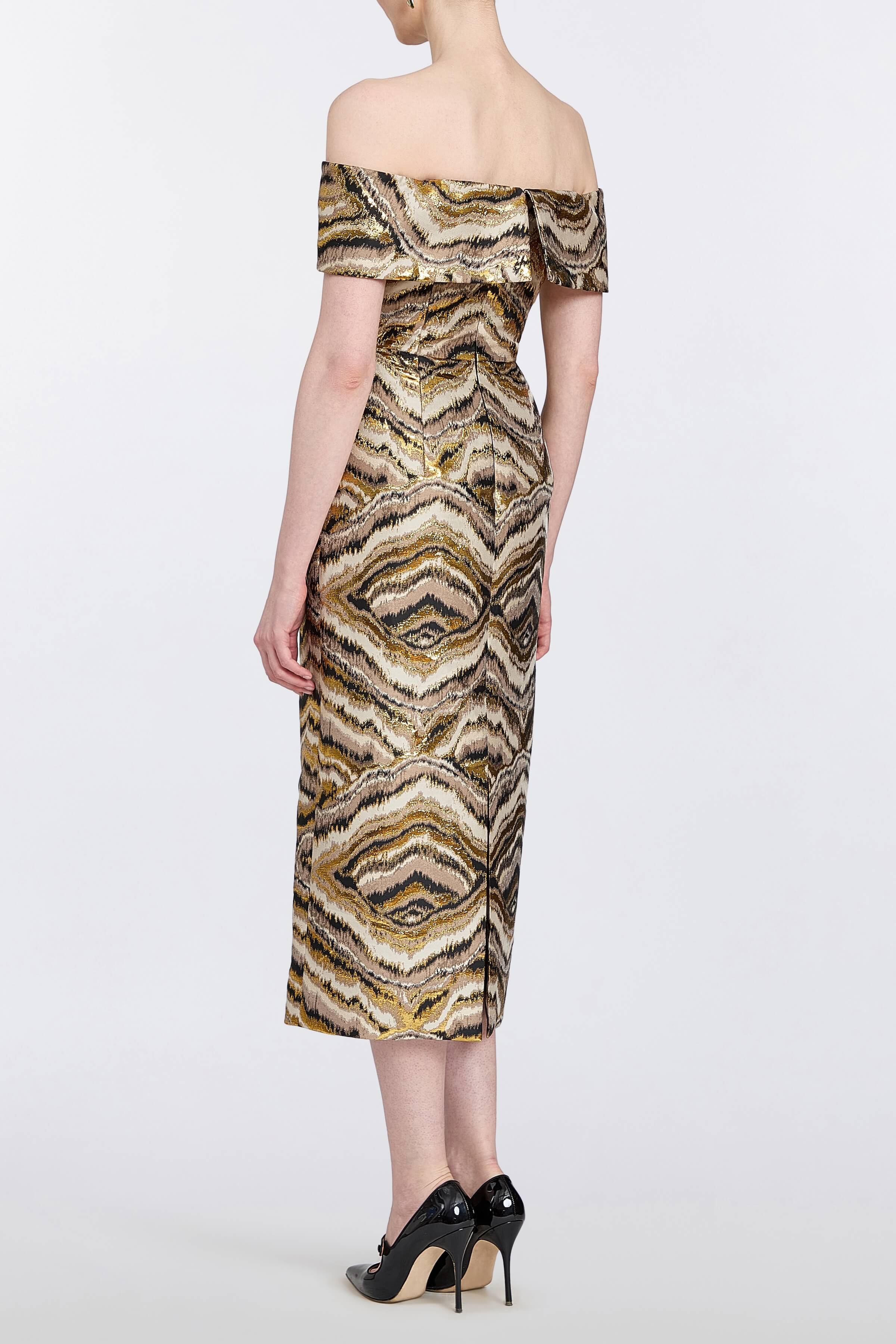 Gloria Metallic Jacquard Off-The-Shoulder Dress