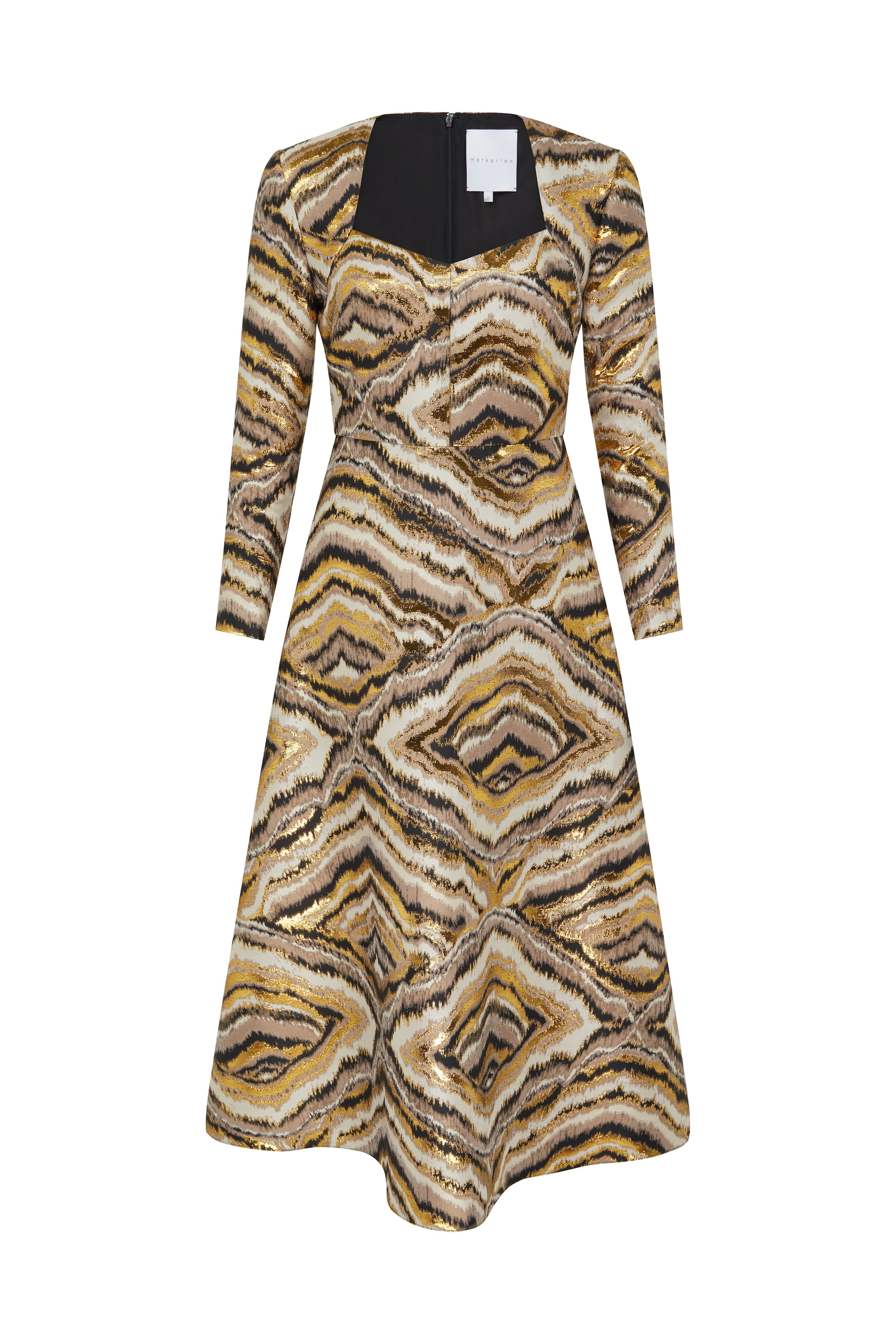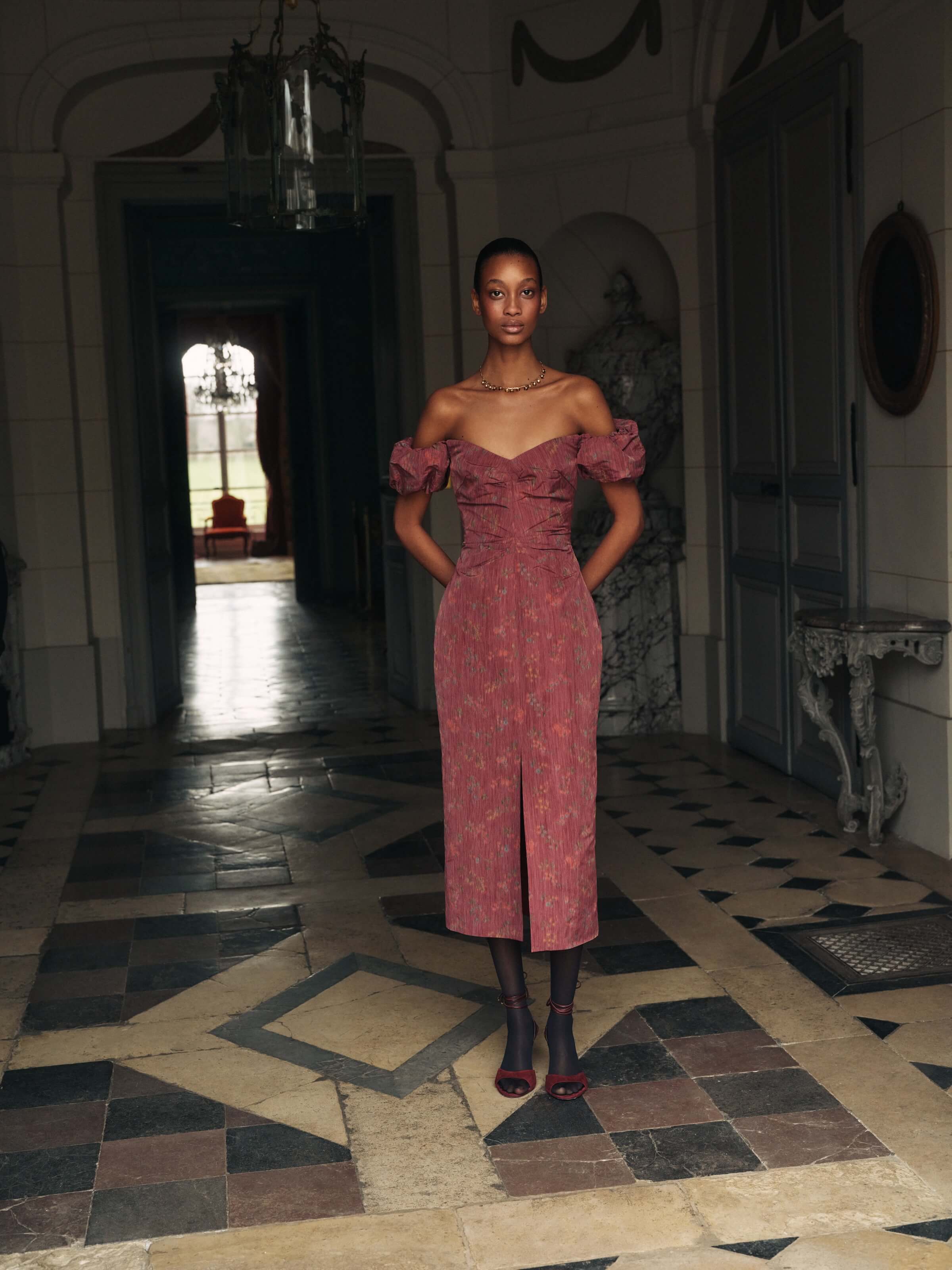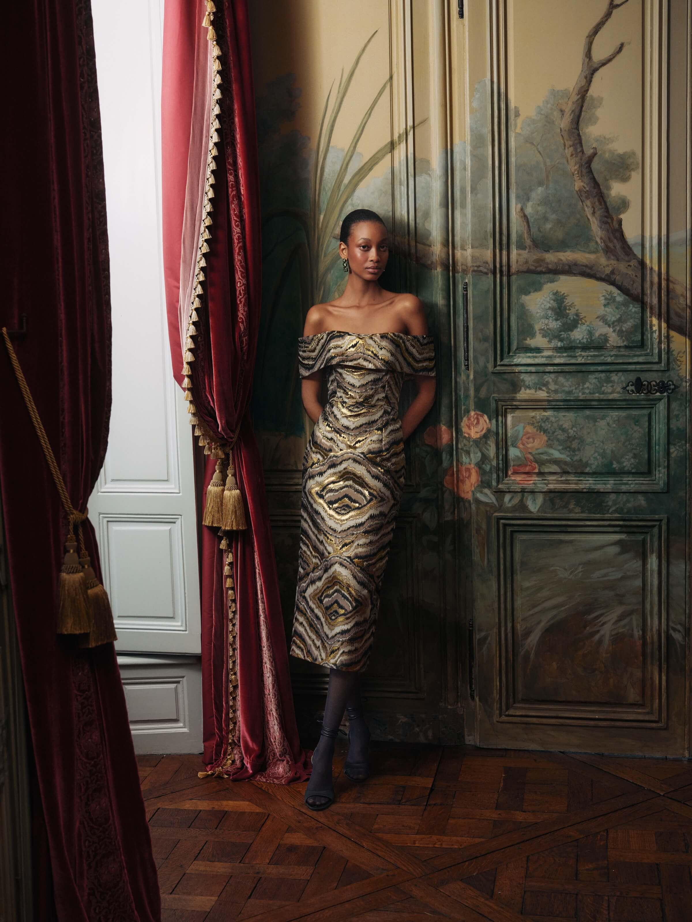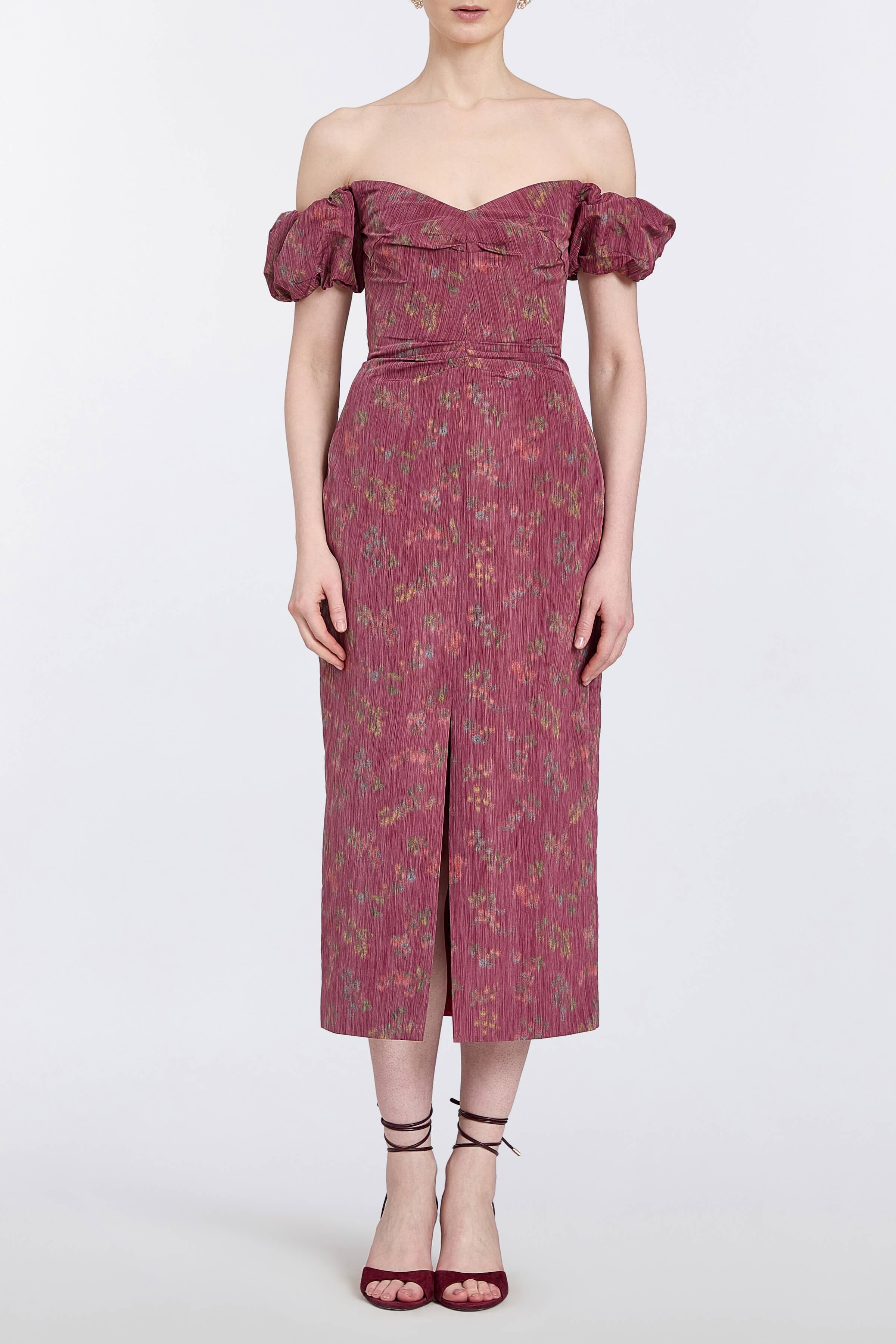 Gloria Metallic Jacquard Off-The-Shoulder Dress