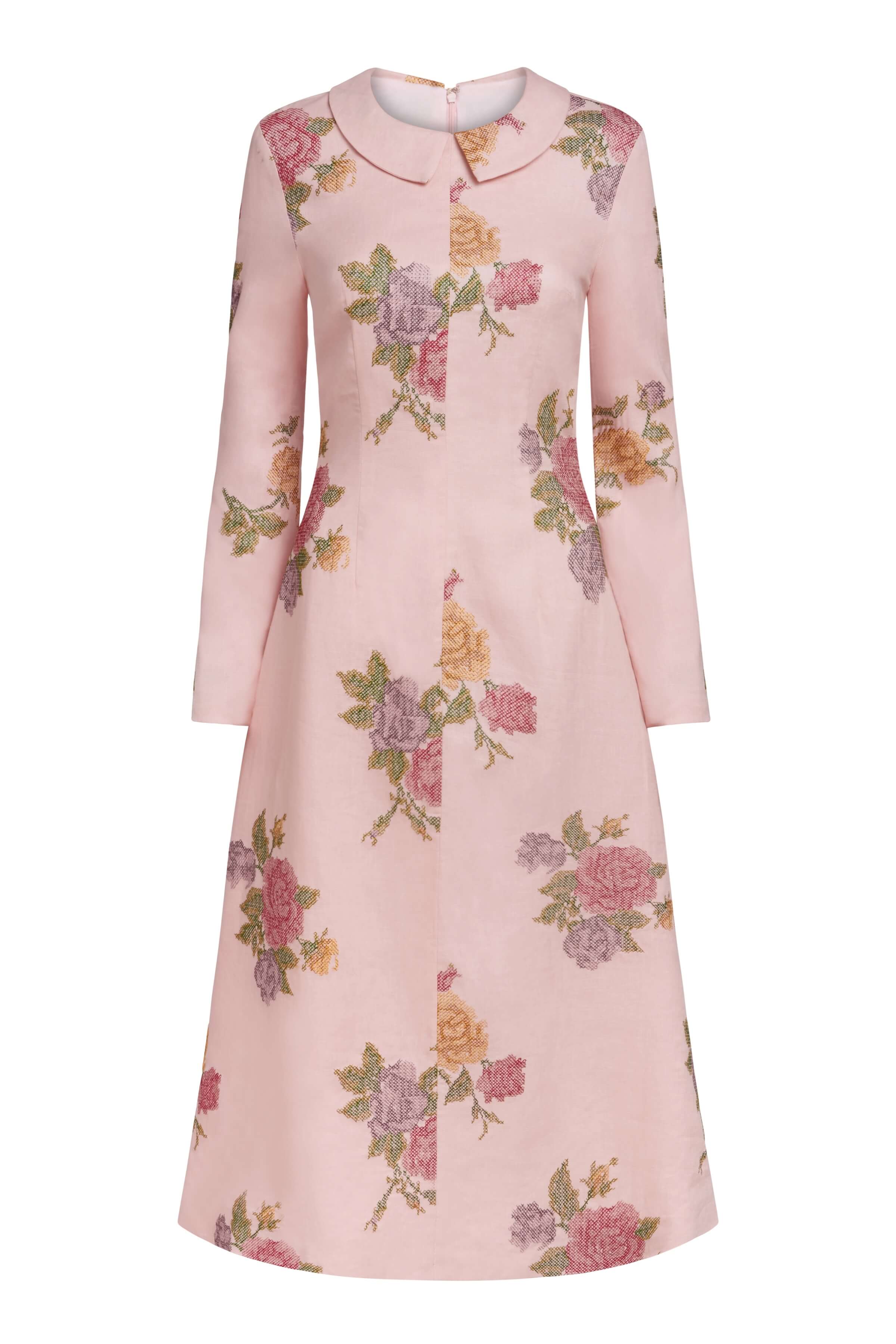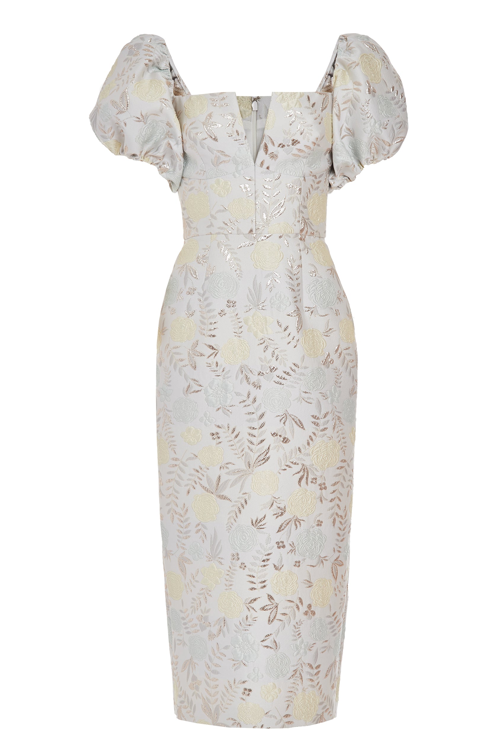 Yvette Ivory Metallic Brocade Puff Sleeve Dress